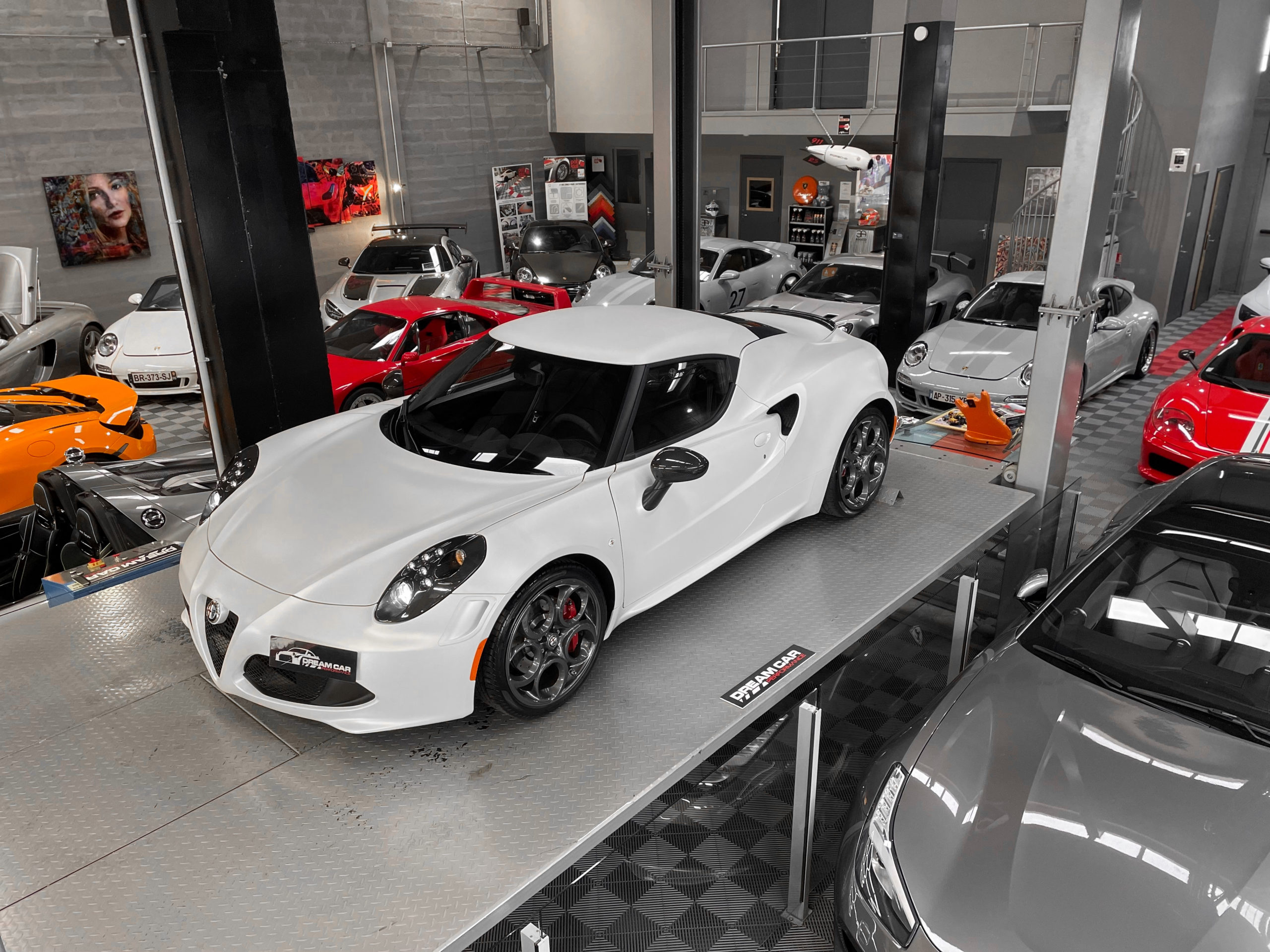 Ici dans une très jolie configuration avec sa couleur extérieur Bianco Triste Opaco et son intérieur en Cuir et Alcantara Noir mais aussi avec ses nombreux détails en Carbon. Cette Alfa Romeo 4C Launch Edition est une première main française.