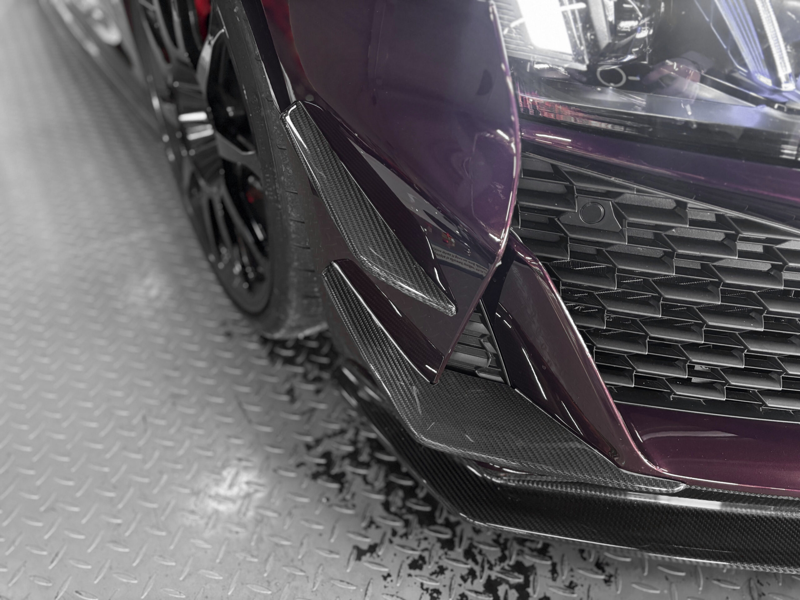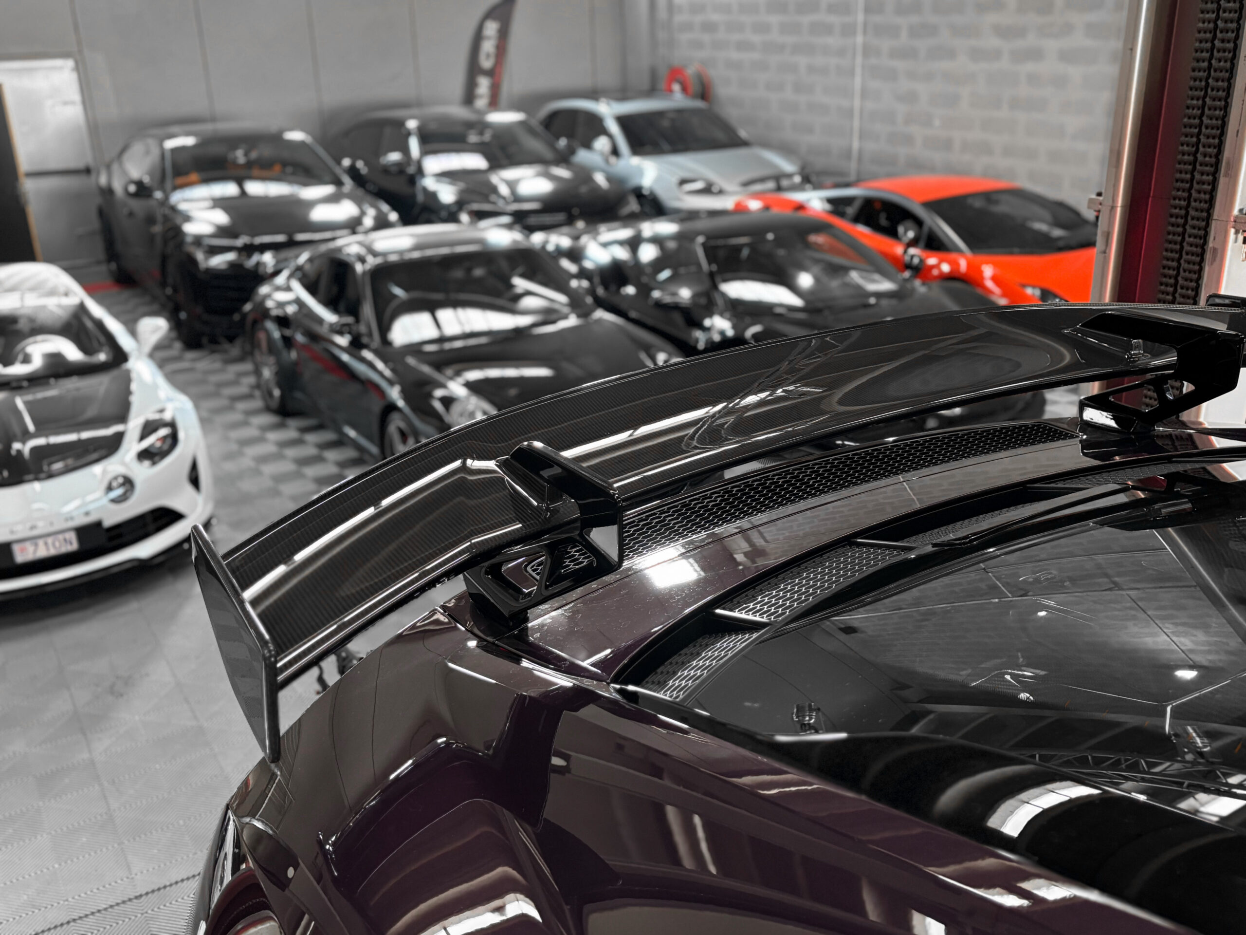 Elle bénéficie d’un film de protection transparent (PPF) sur la face avant les rétroviseurs et toutes les pièces en carbone extérieur.