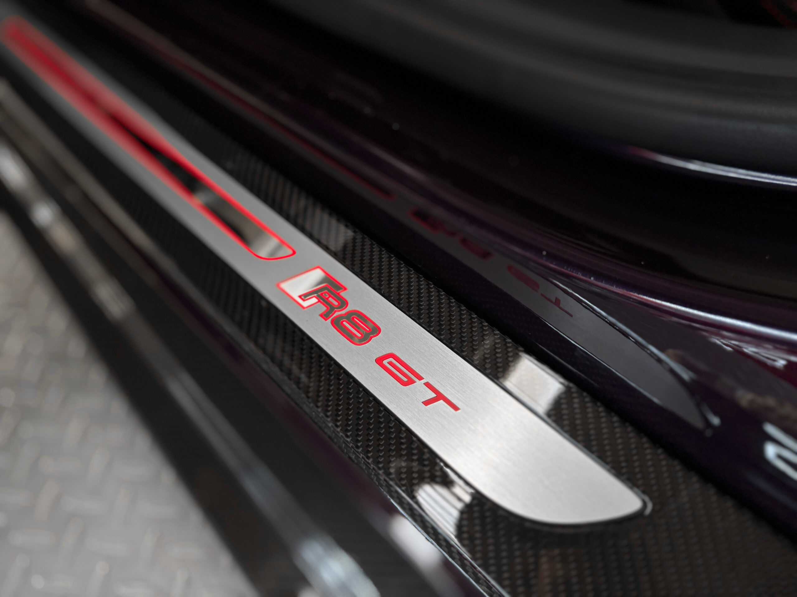 Seuil de porte en carbone brillant avec insert aluminium éclairé Audi exclusive
