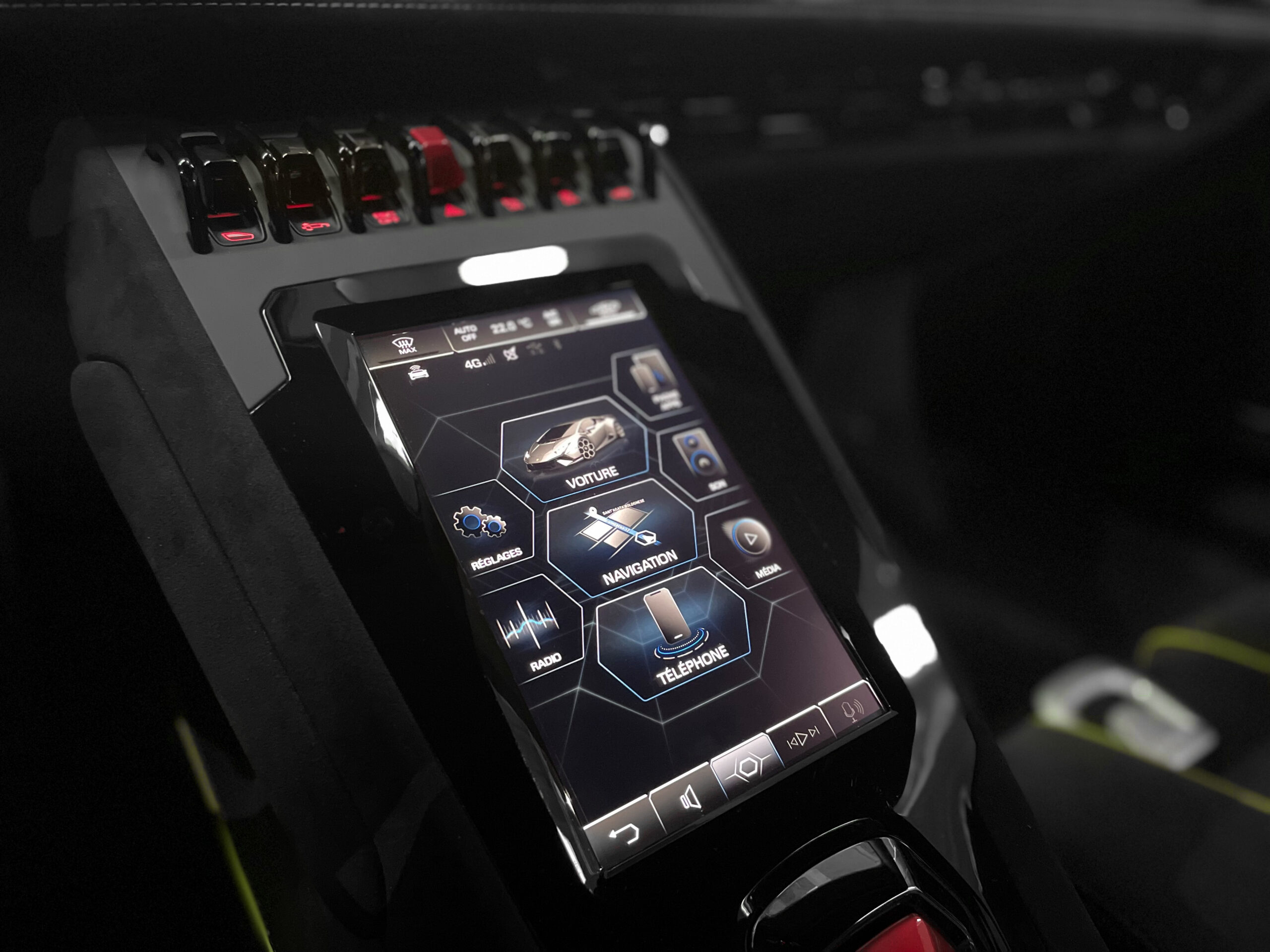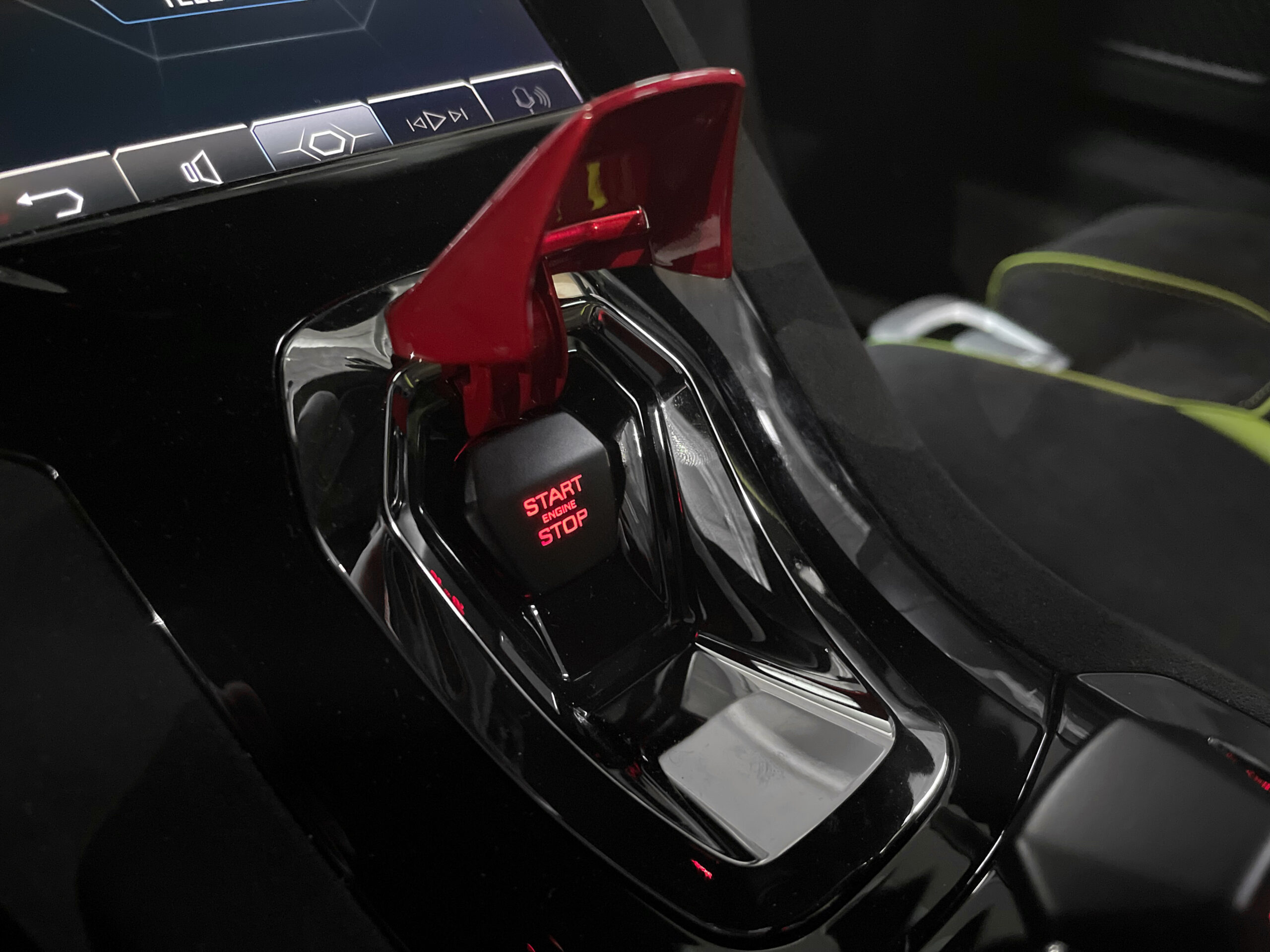 Console centrale en alcantara noir et vert scandale