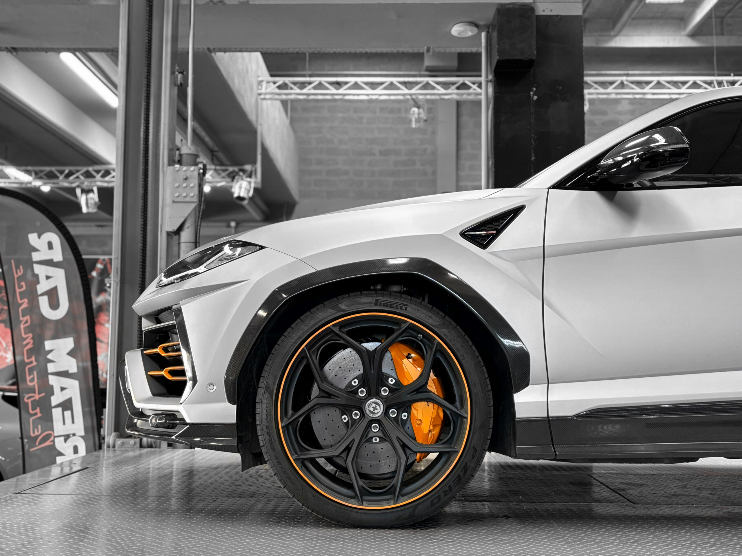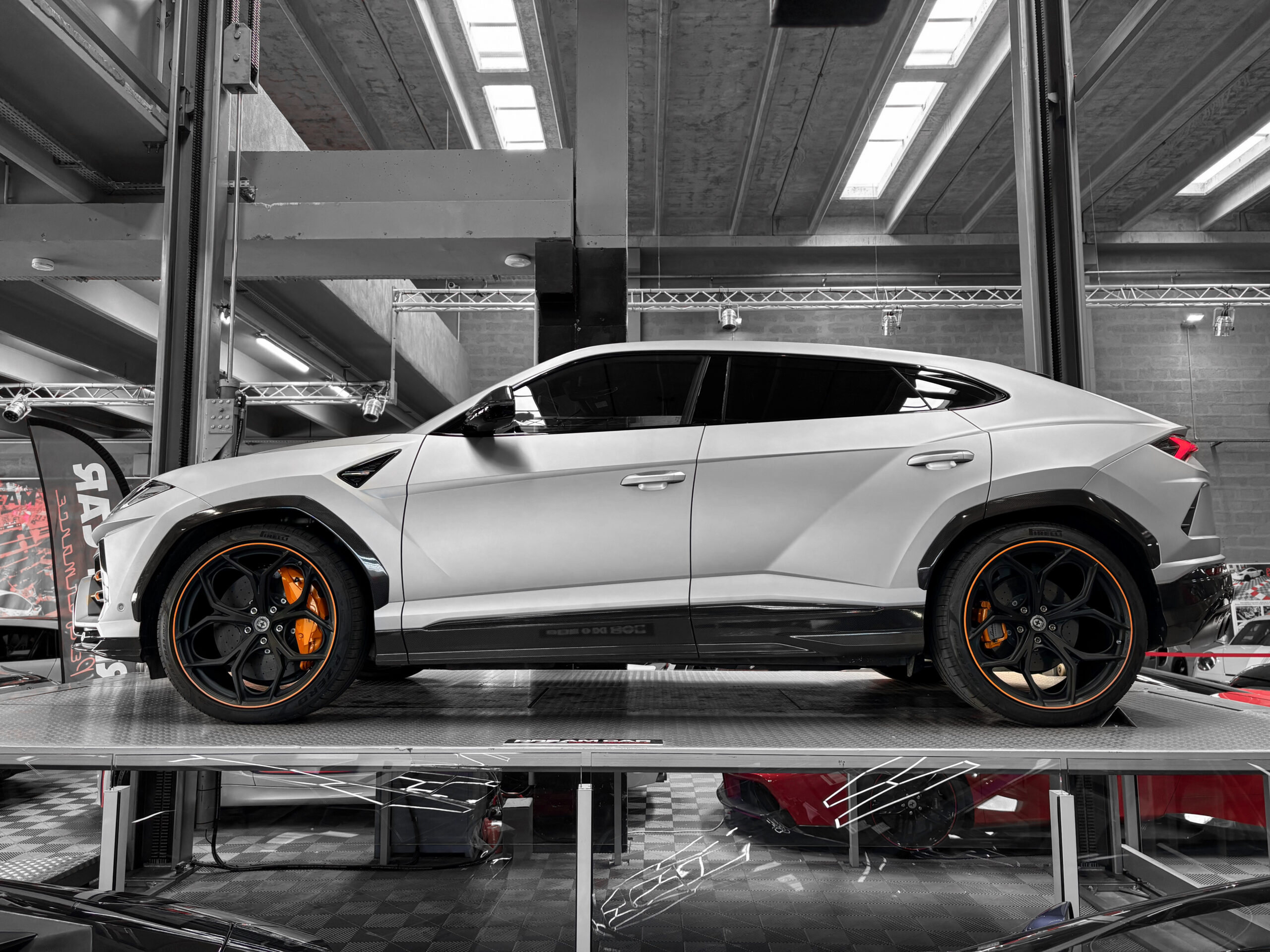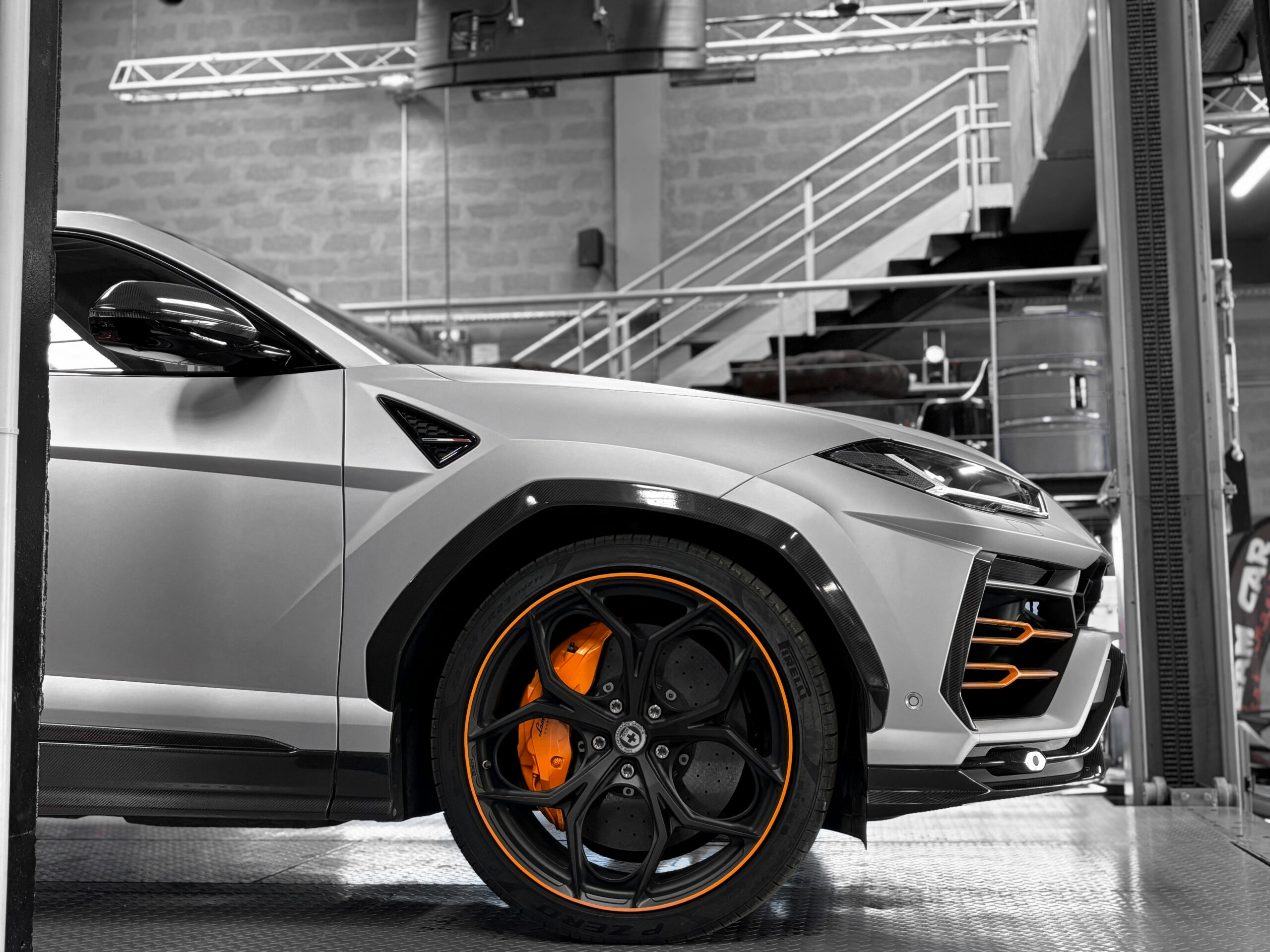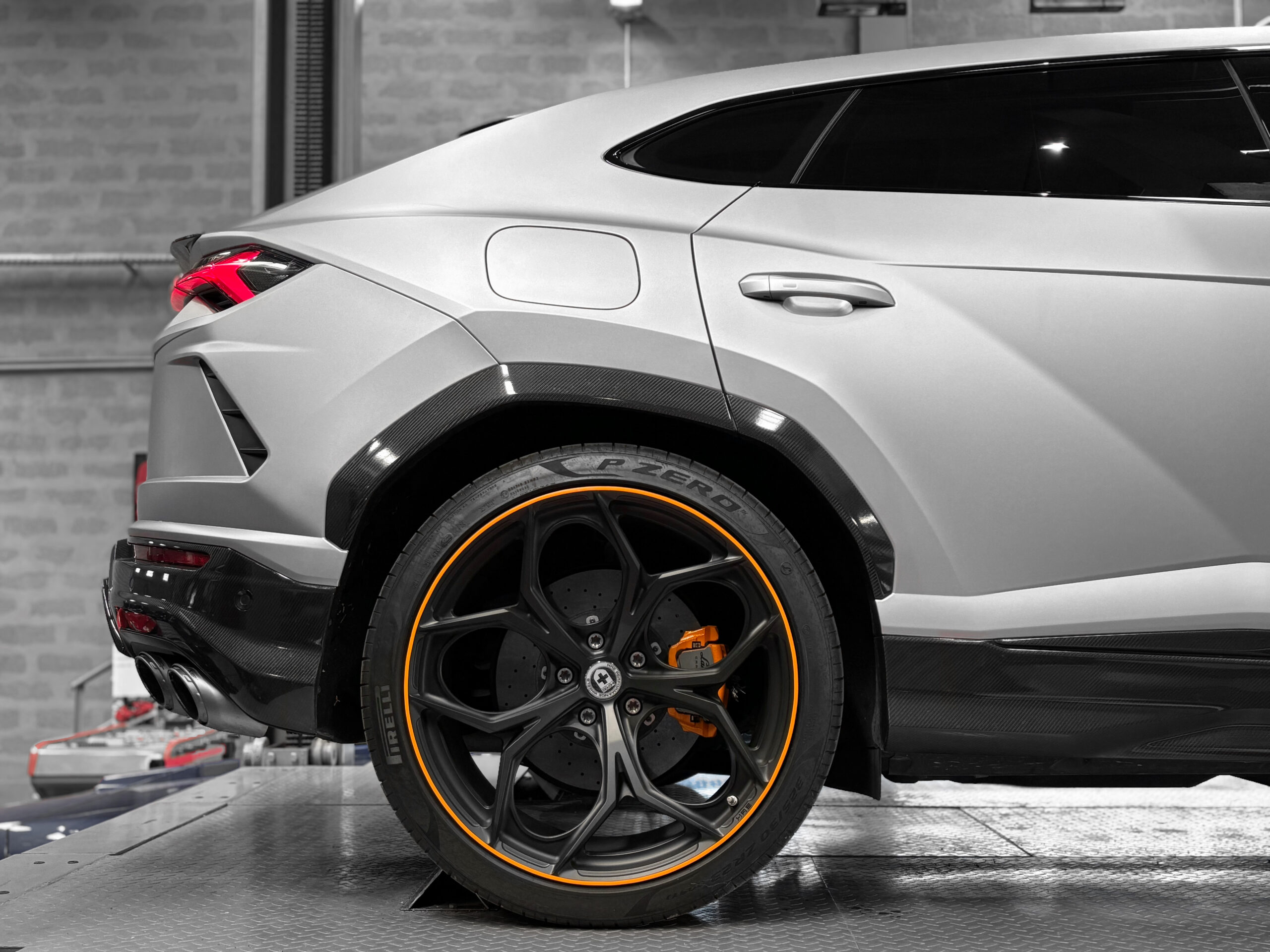 Il dispose également de nombreux éléments en carbone extérieur AD personam. Il bénéficie également de jantes HRE 23’’.