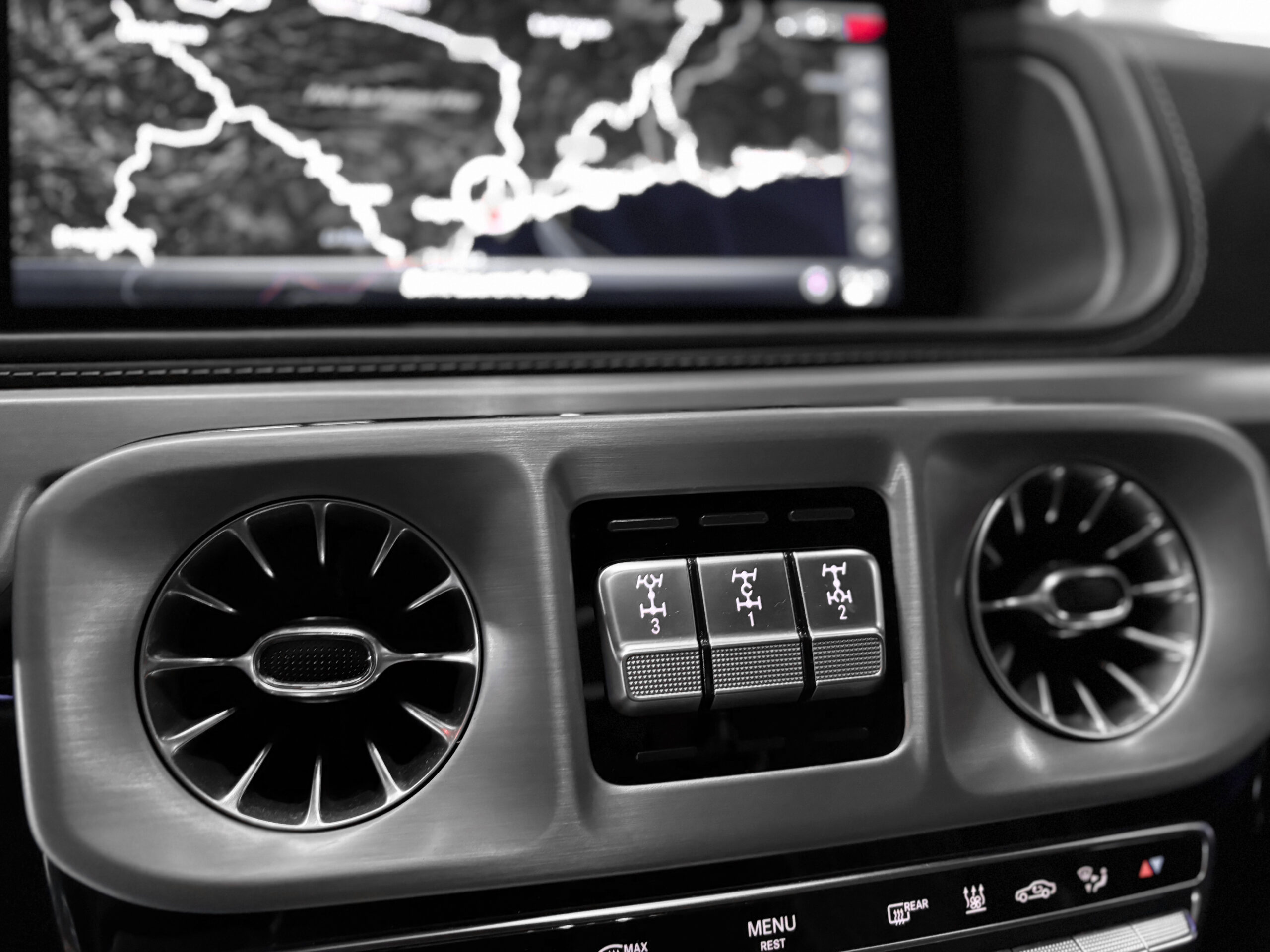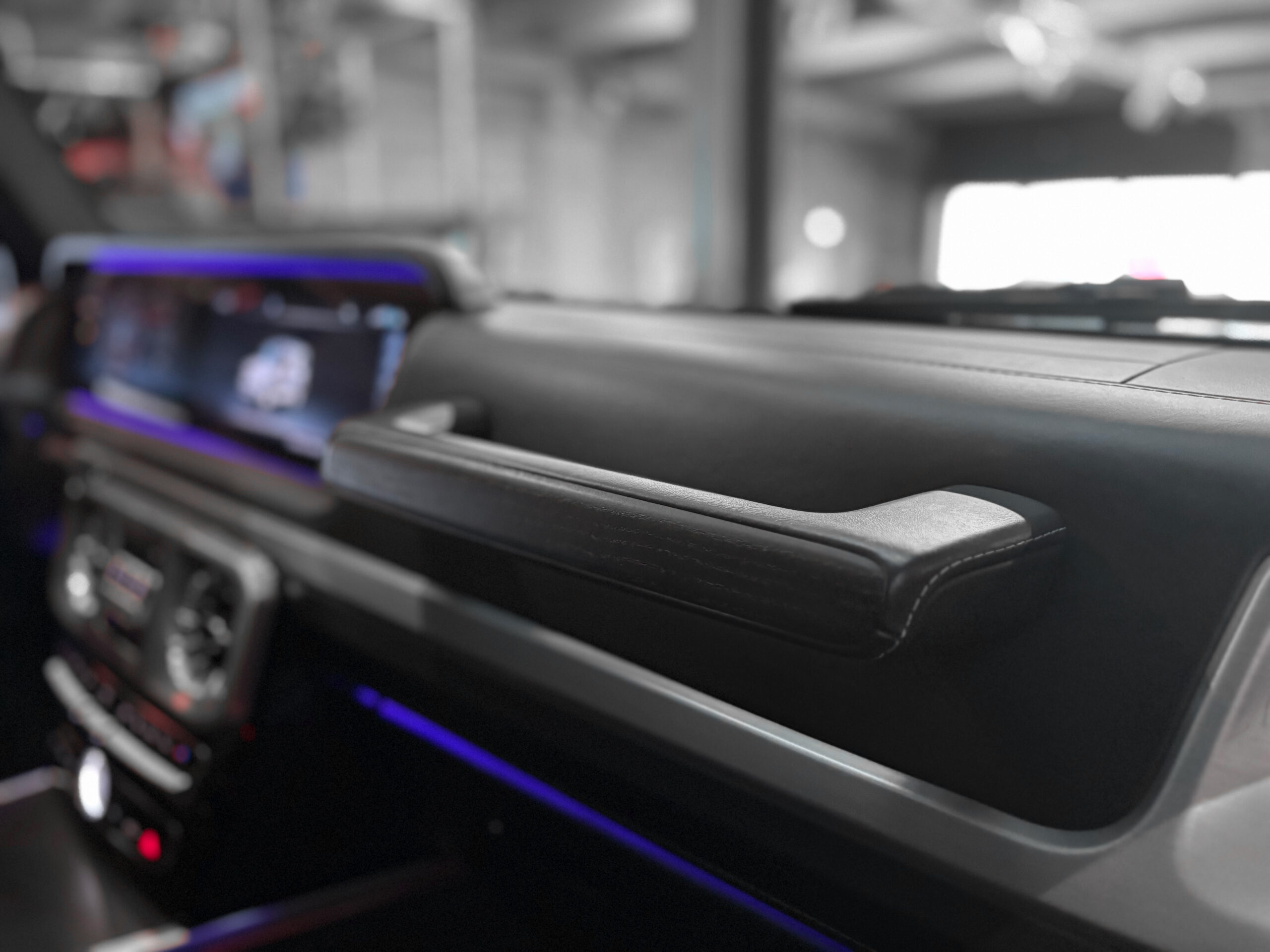 Inserts en frêne noir et aluminium dans l’habitacle