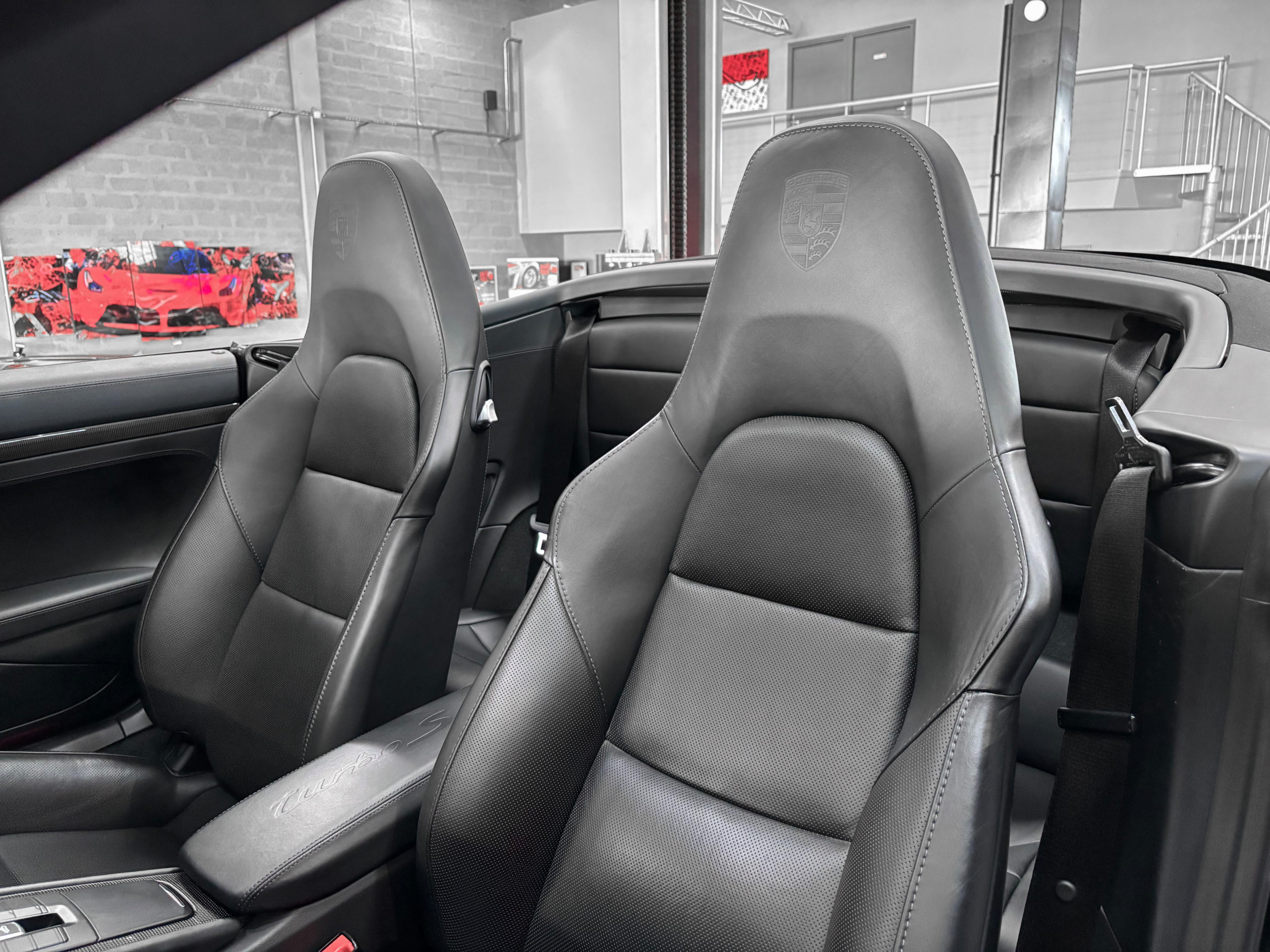 Logo TURBO S sur accoudoir central