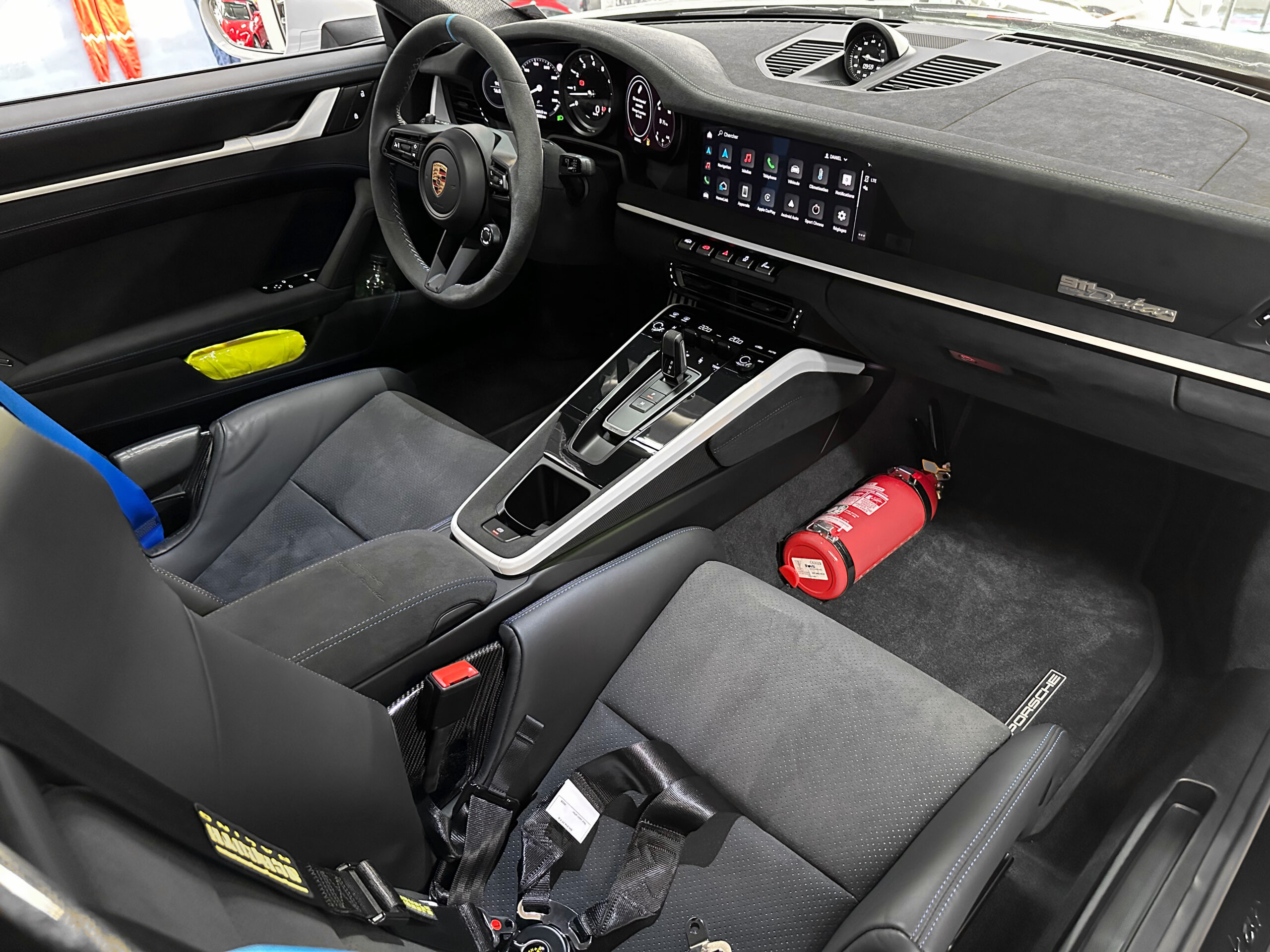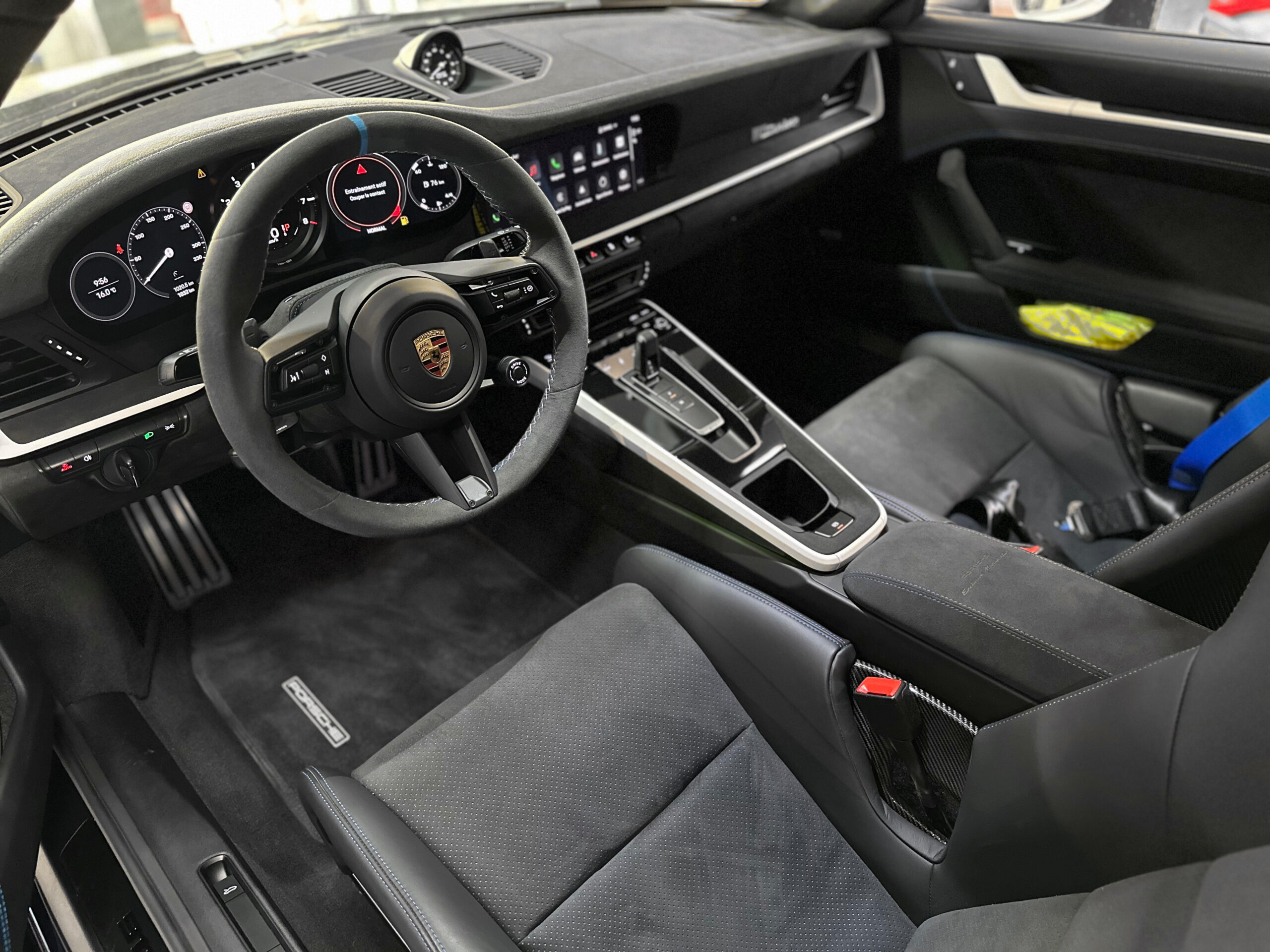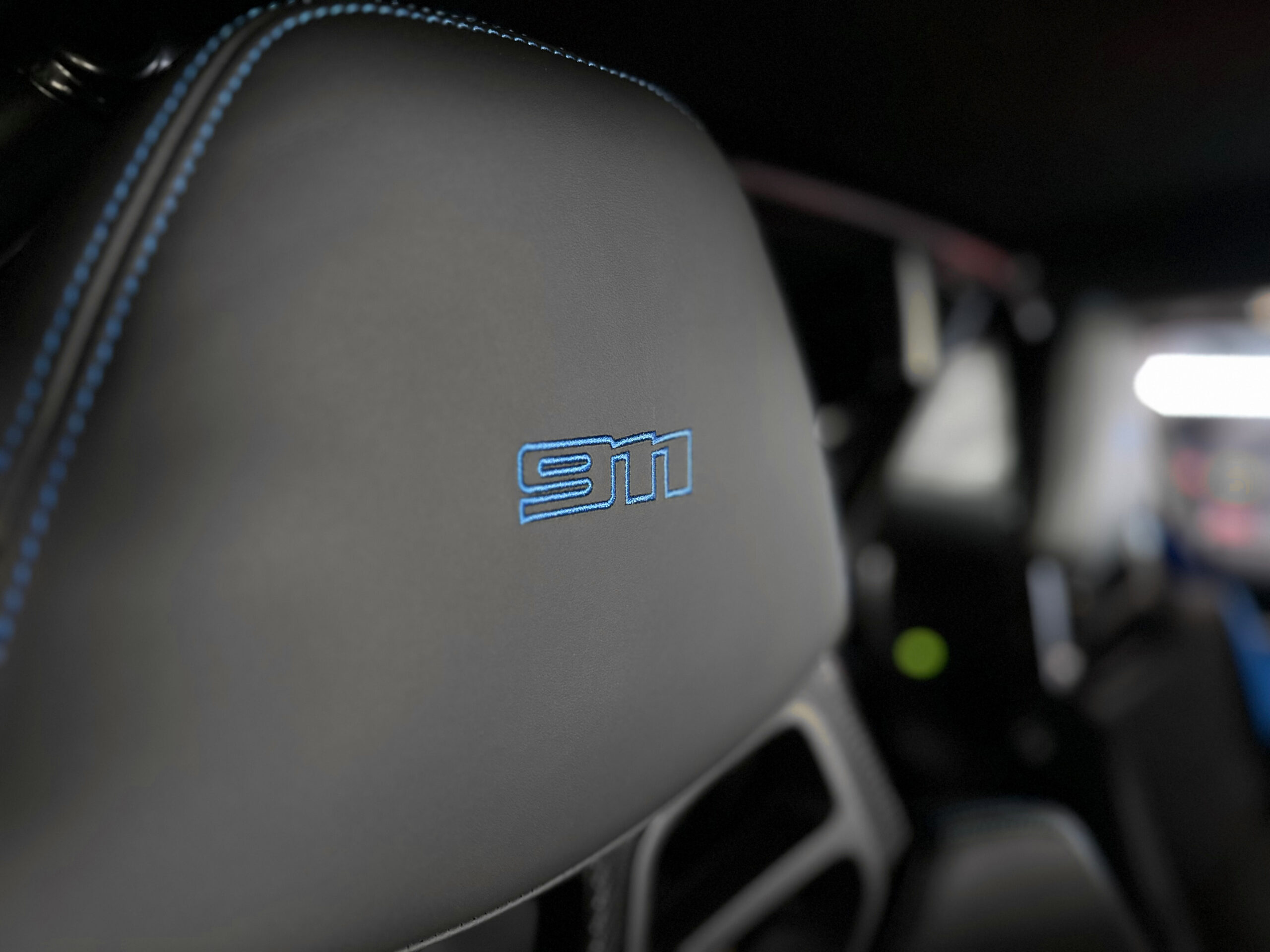 Les coutures décoratives en Bleu, le marquage 12h Bleu sur le volant sport GT et les ceintures en Bleu confèrent à l’ensemble une allure sportive.