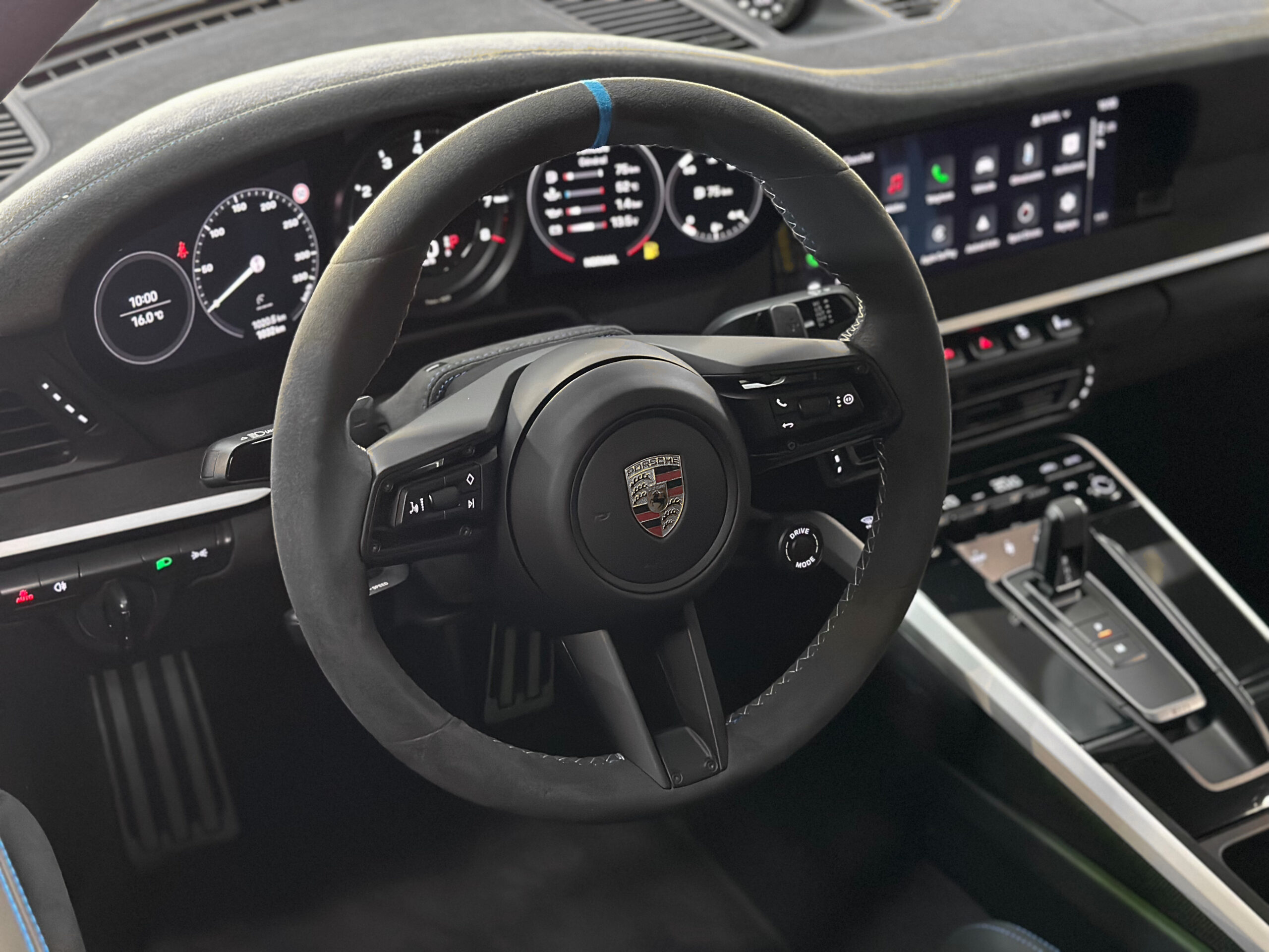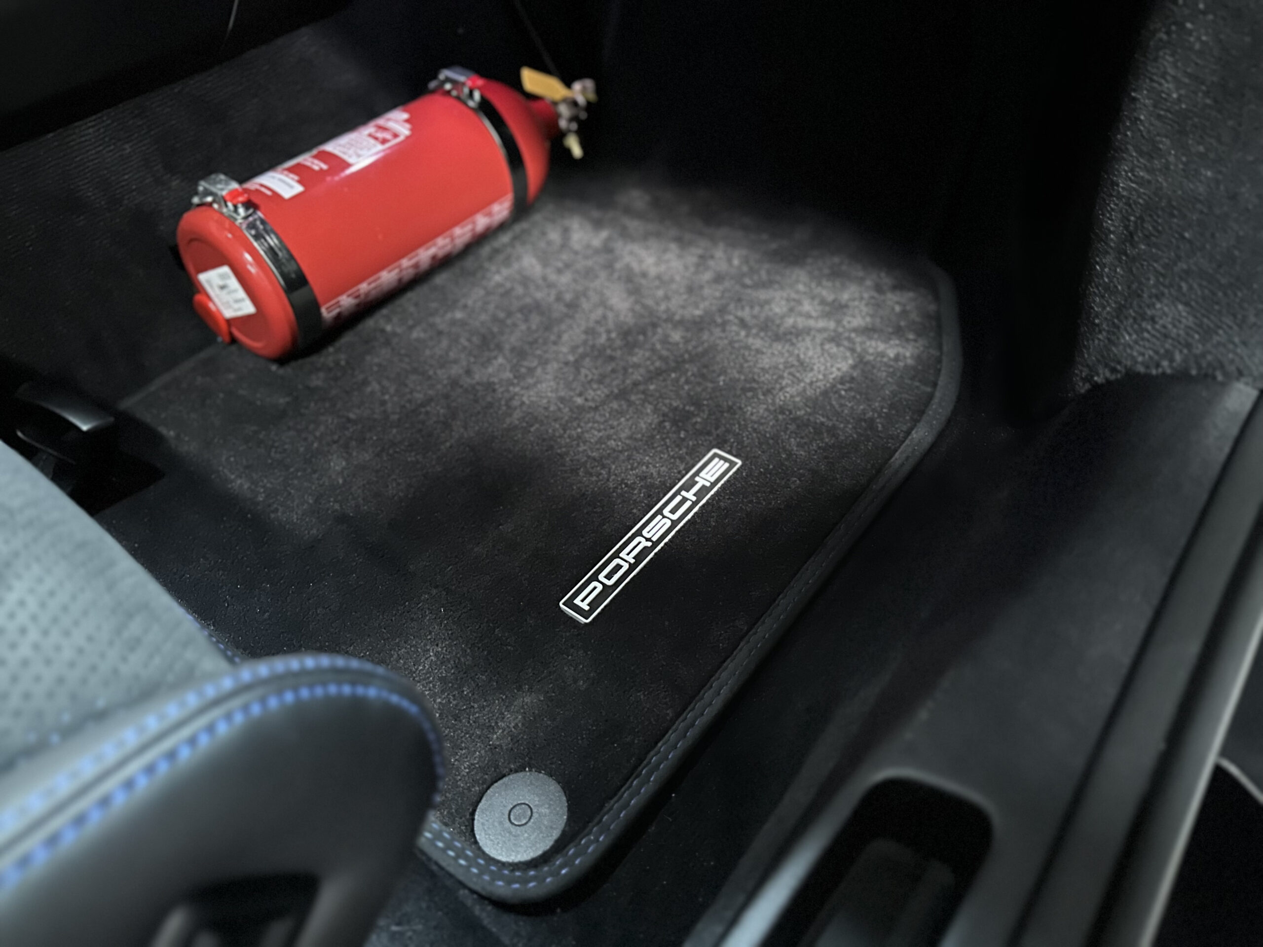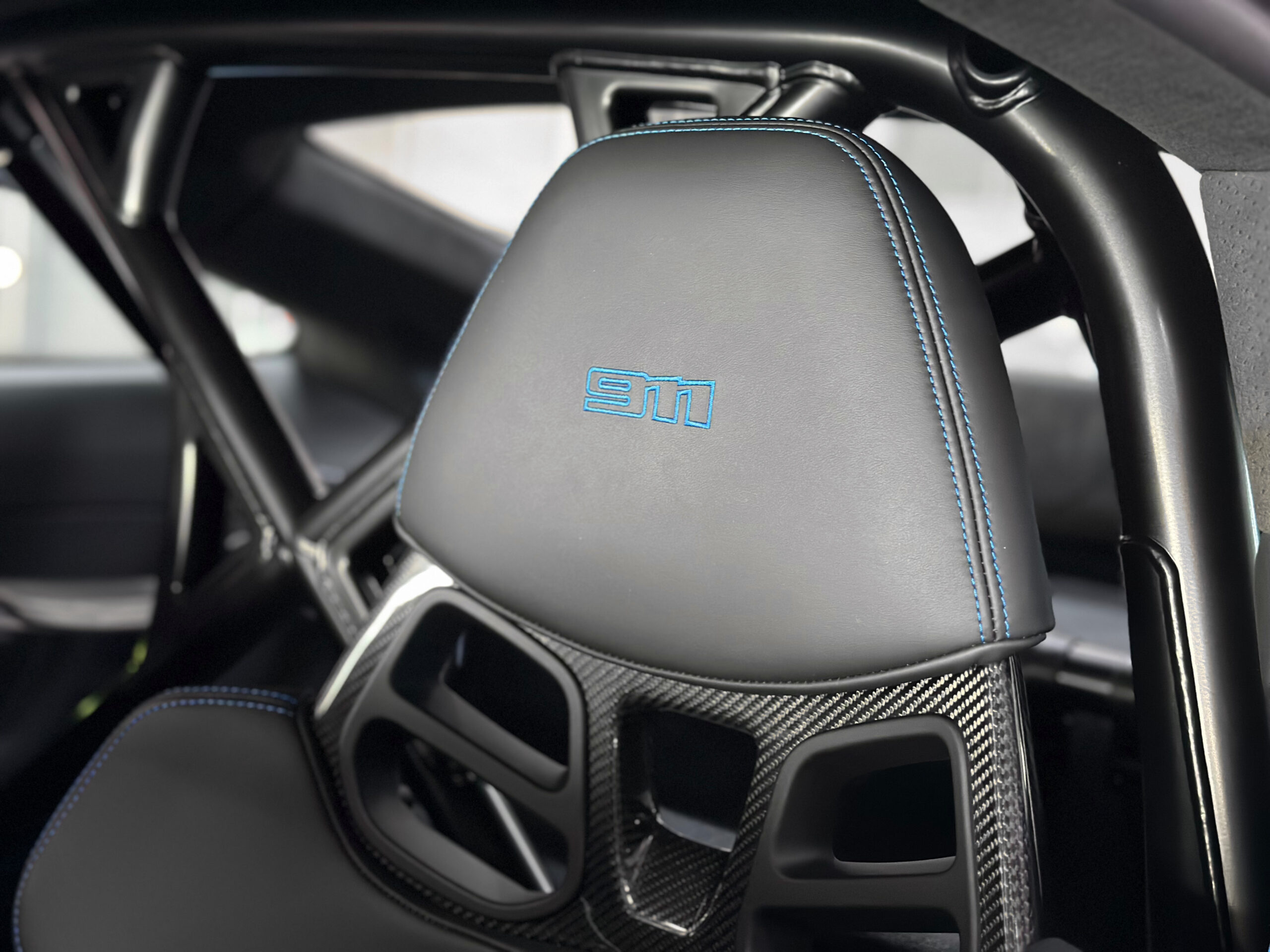 Les coutures décoratives en Bleu, le marquage 12h Bleu sur le volant sport GT et les ceintures en Bleu confèrent à l’ensemble une allure sportive.