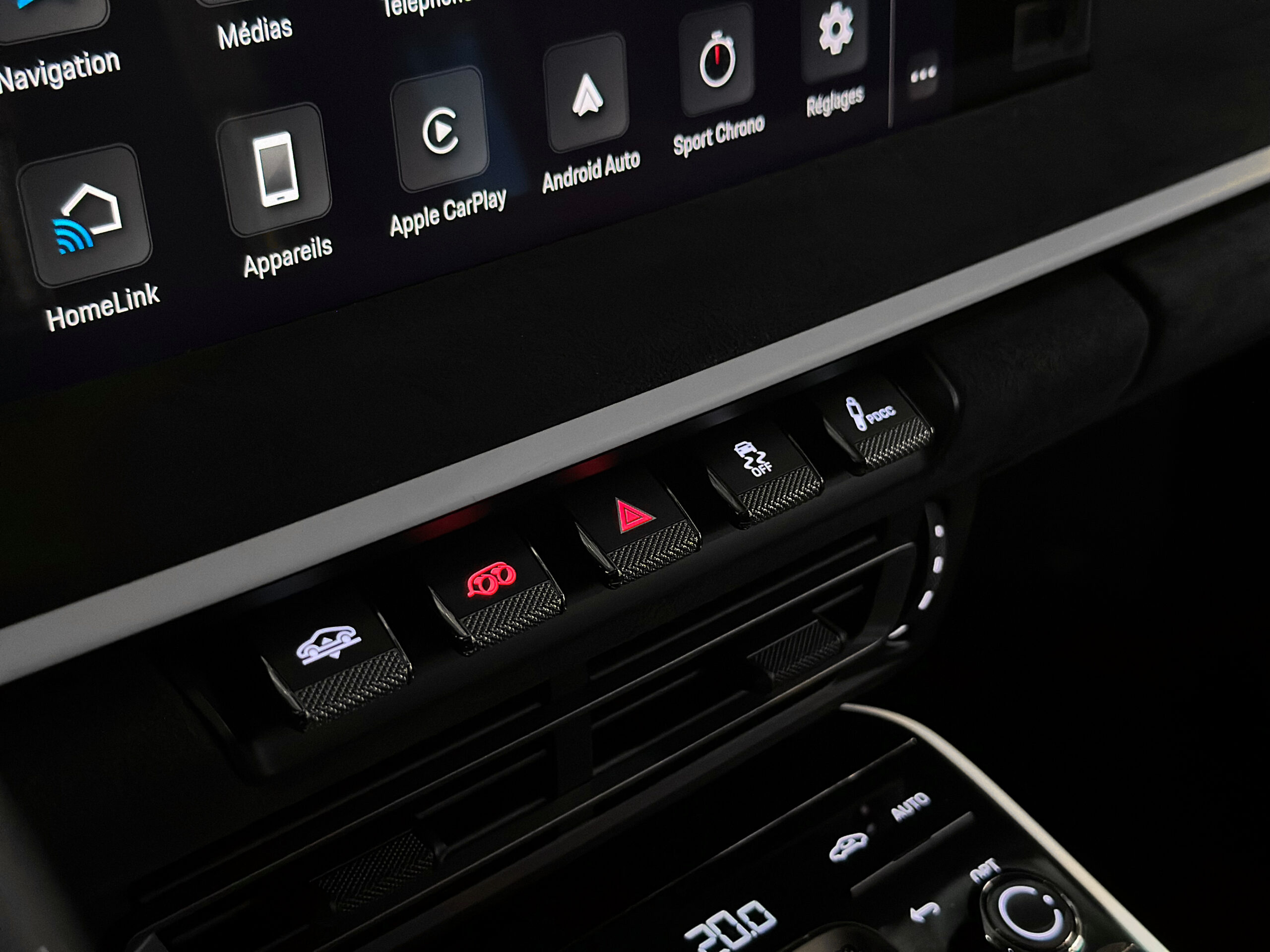 Le pack Rallye Design gagne en dynamisme grâce à des éléments auxiliaires en Race-Tex, par exemple des inserts décoratifs associés à des supports décoratifs en Ceramica.
