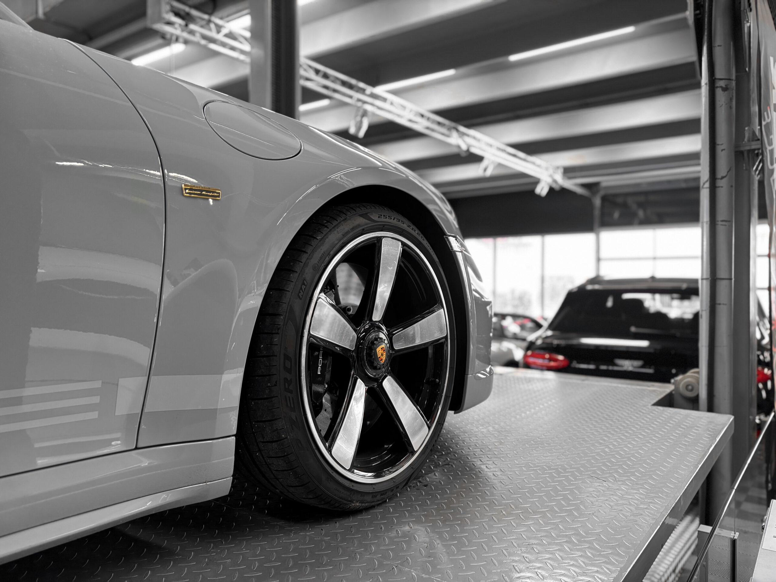 Éditée en série limitée, elle rend hommage à la légendaire 911 des années 70 avec son toit à double bossage, son becquet queue de canard et sa livrée exclusive gris Sport Classic.
