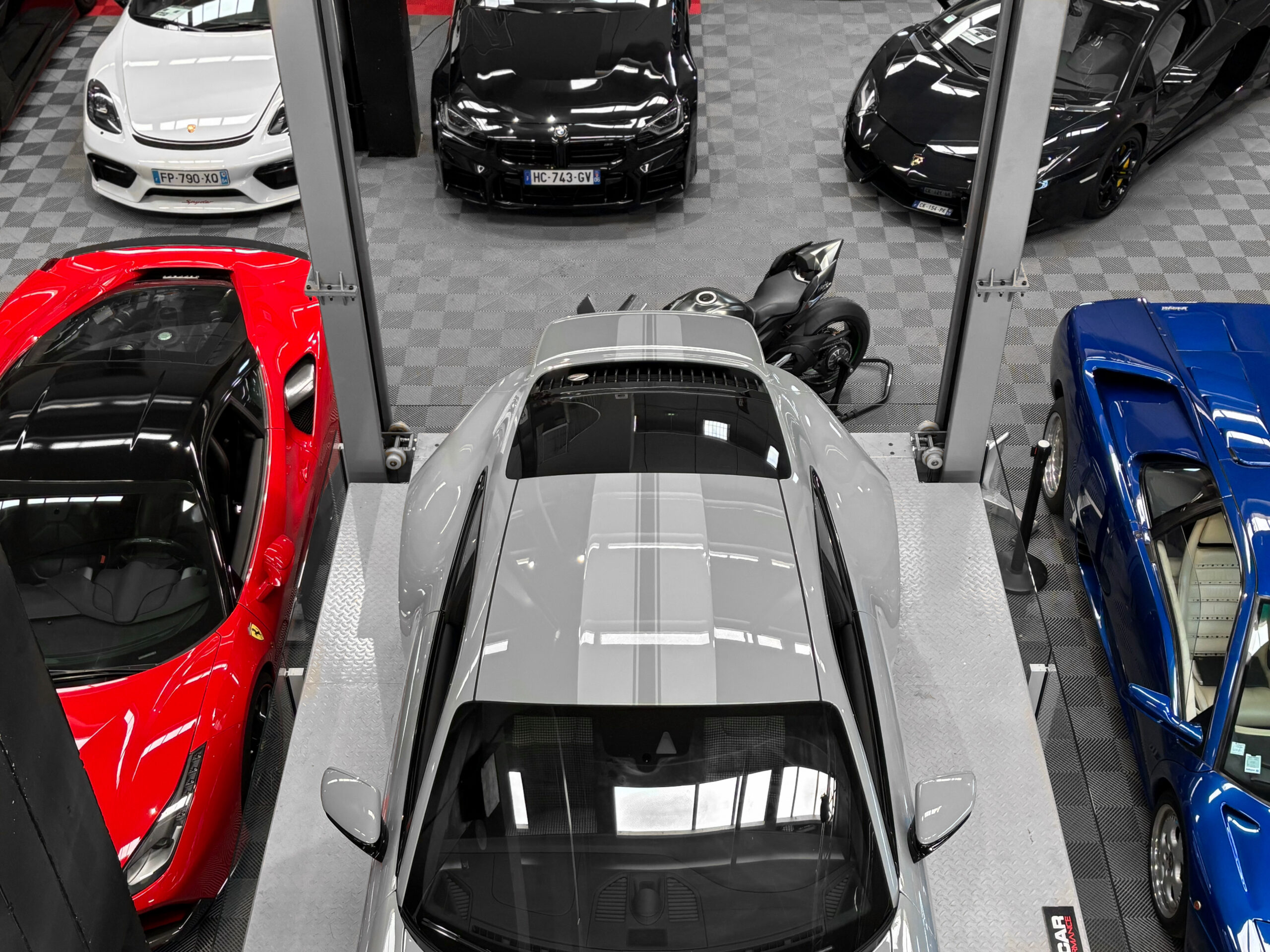 Double bande Sport Classic sur le capot, le toi et l’aileron arrière peint en Gris Sport Clair