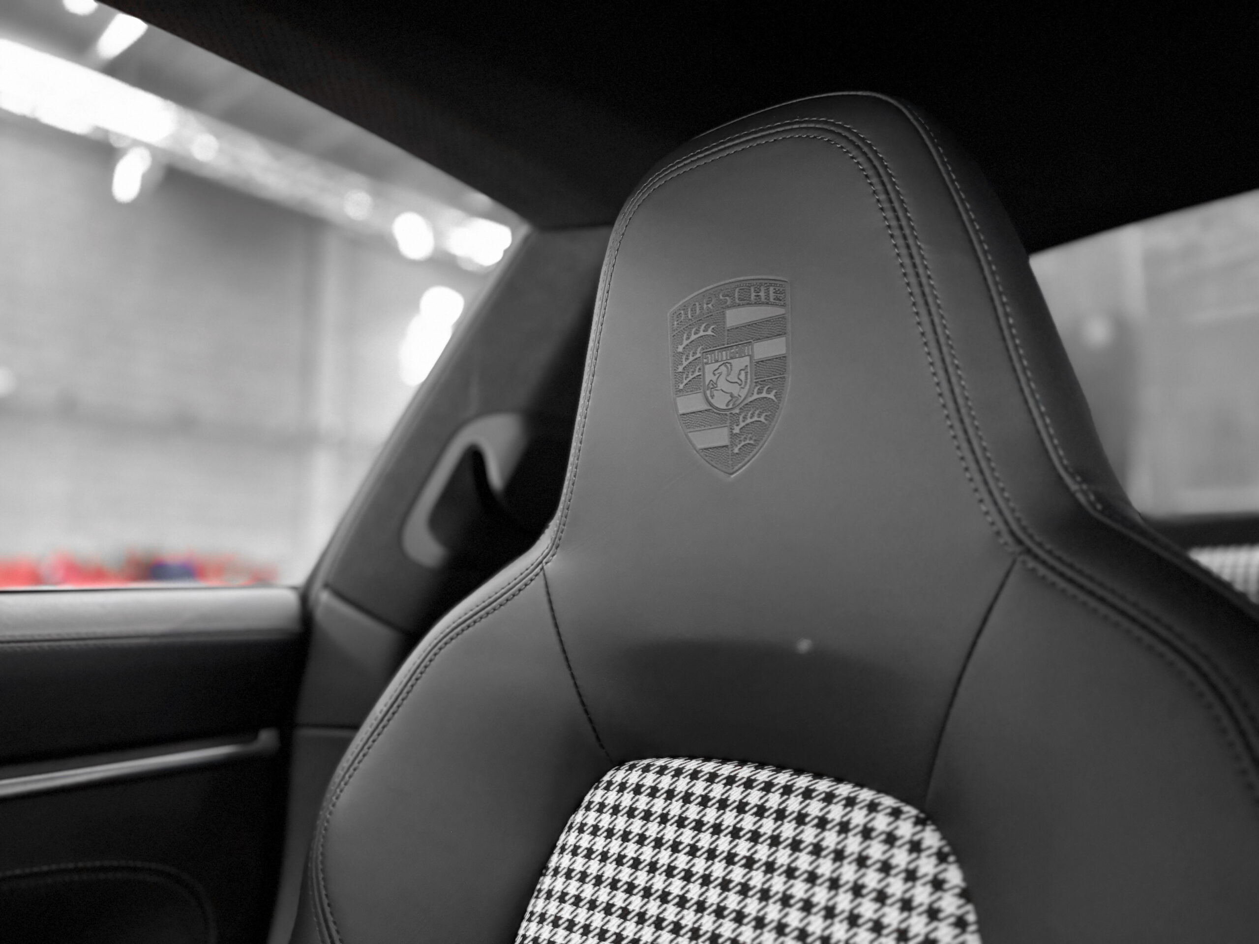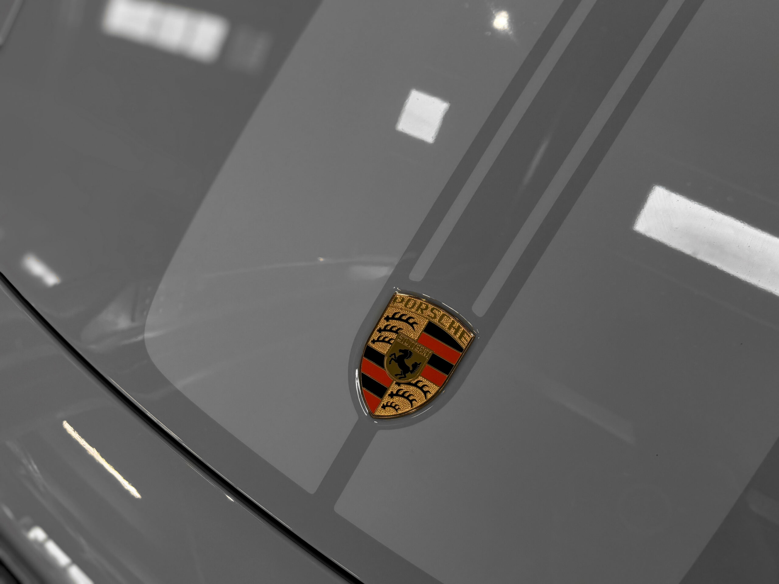 Logo « PORSCHE » en couleur Or intégré dans le bandeaux lumineux arrière