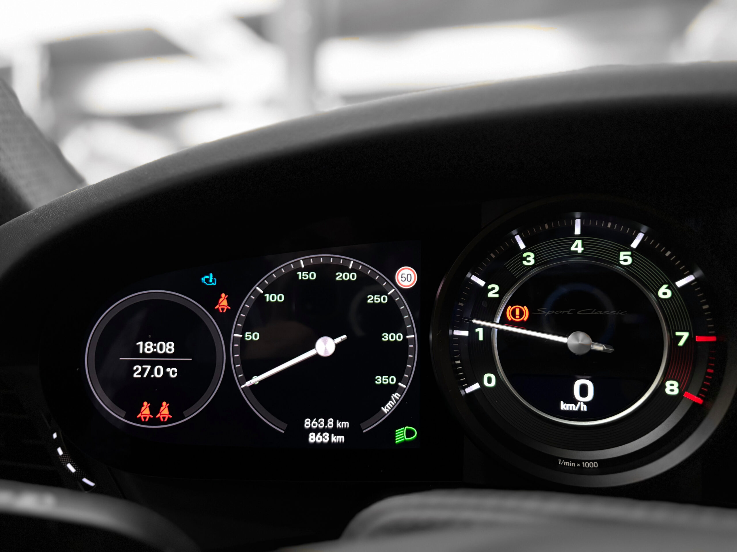 Ici présentée dans une superbe configuration Gris Sport Classic intérieur Cuir Noir et Tissu Pepita, cette Porsche 992 Sport Classic n’est pas encore immatriculée (le malus est à prévoir) et bénéficie de la TVA apparente.