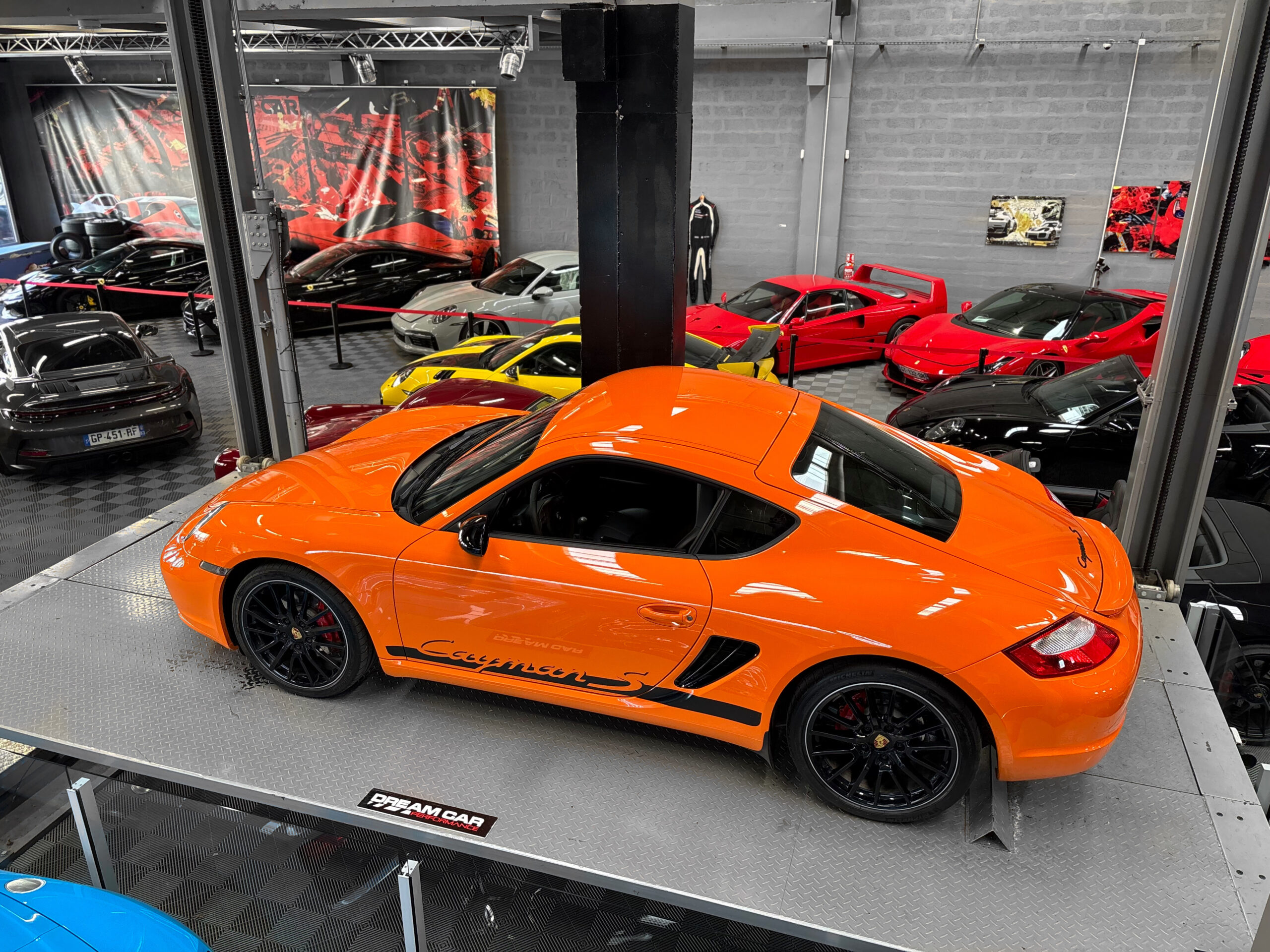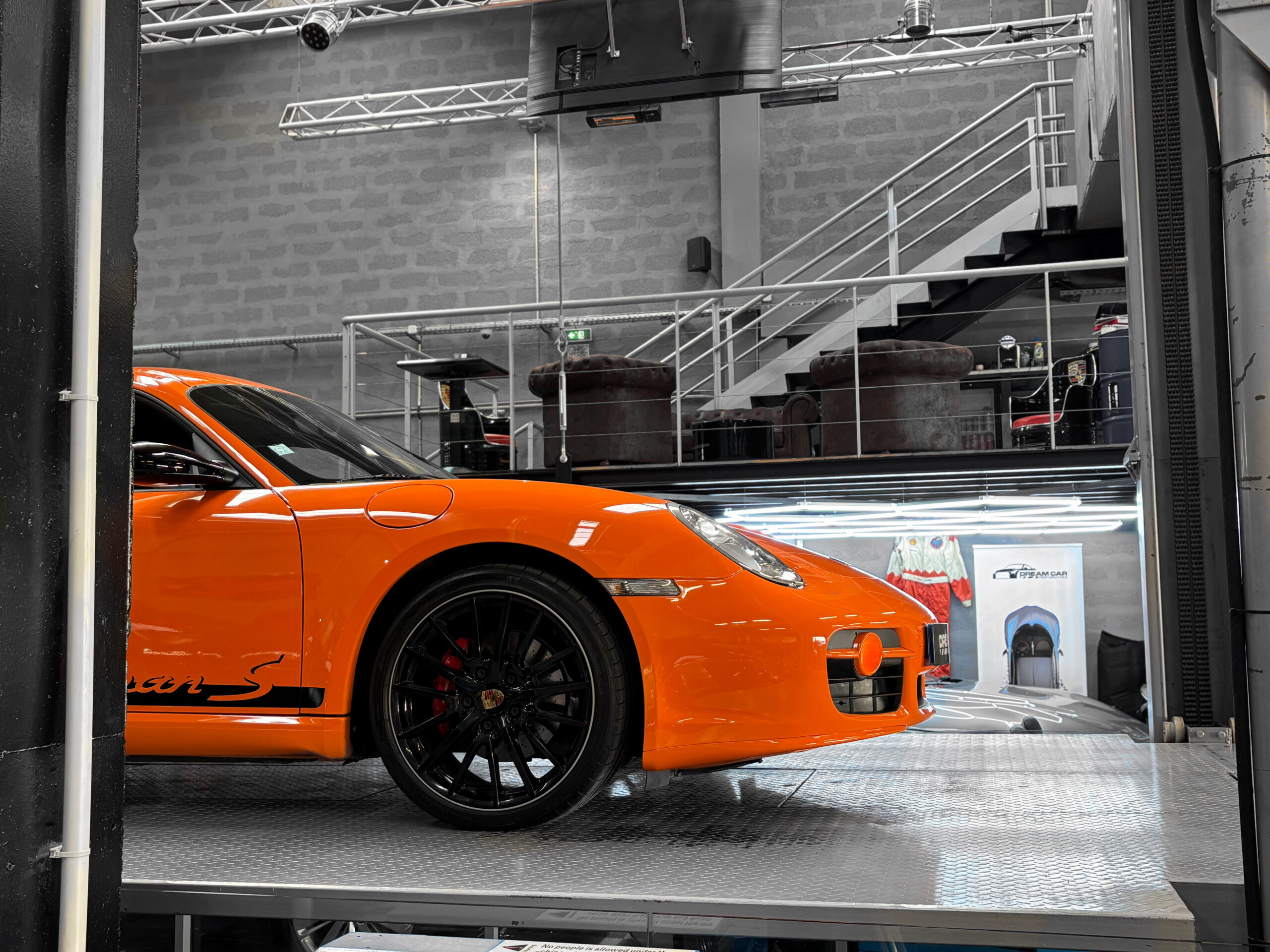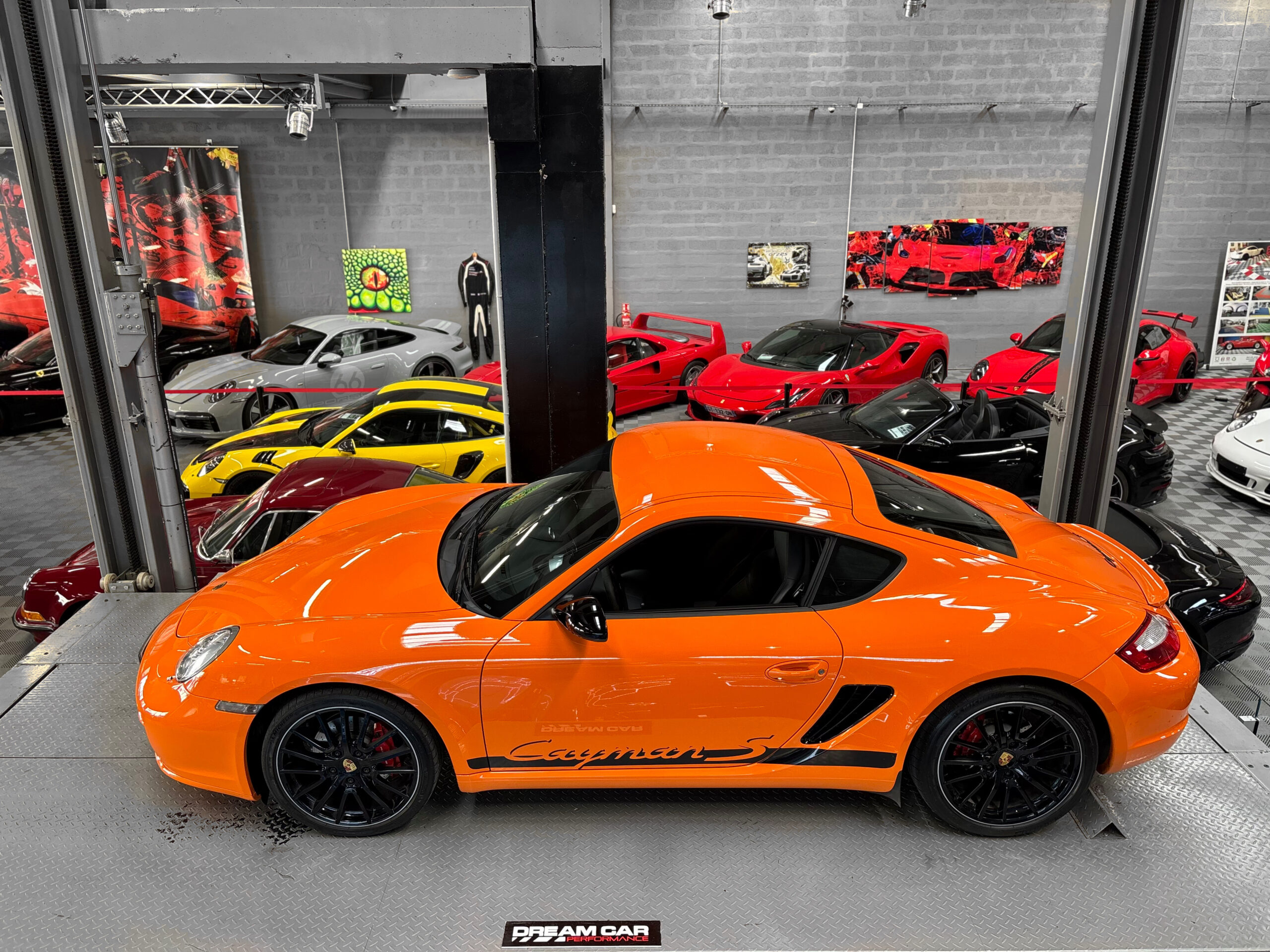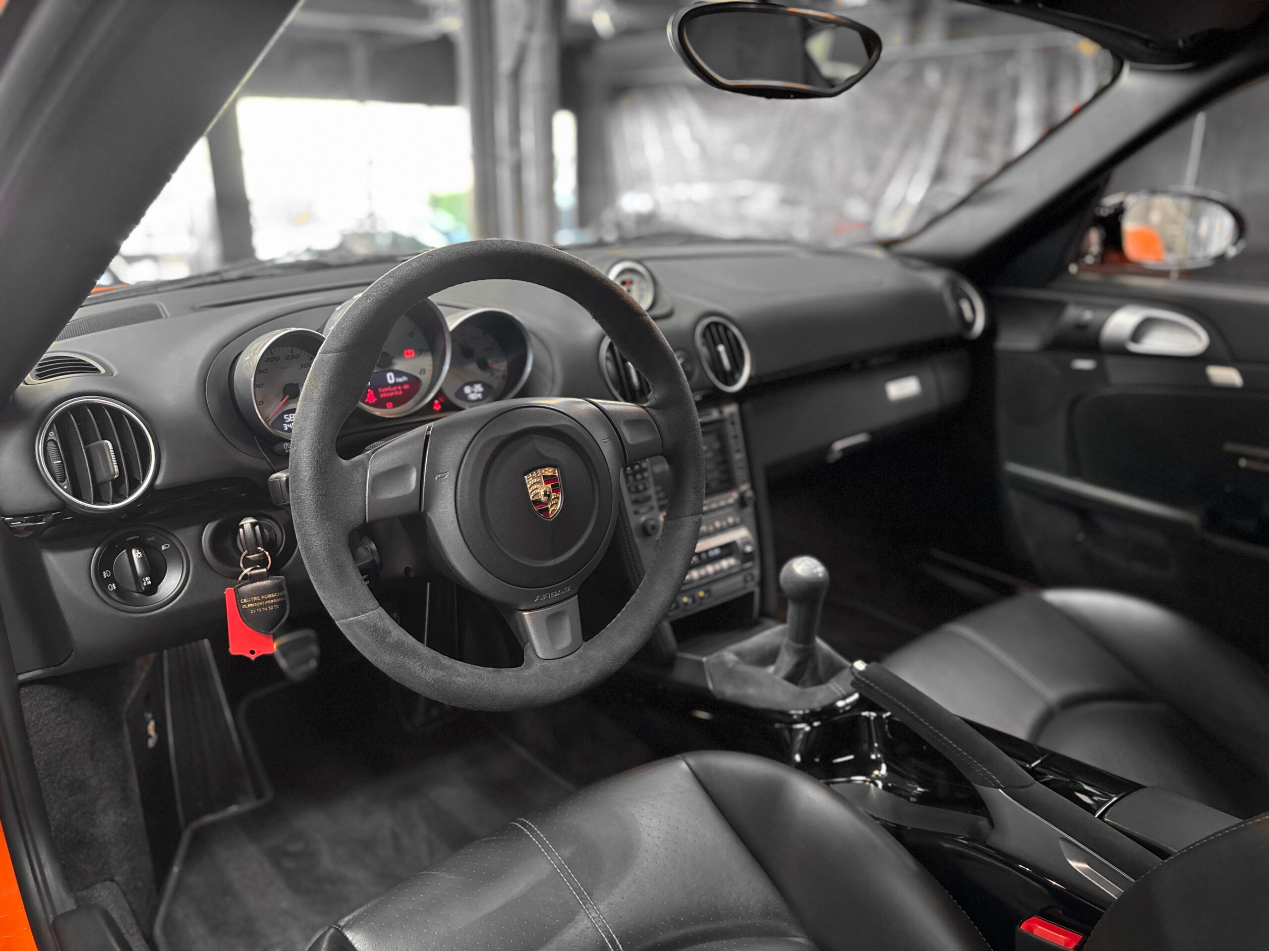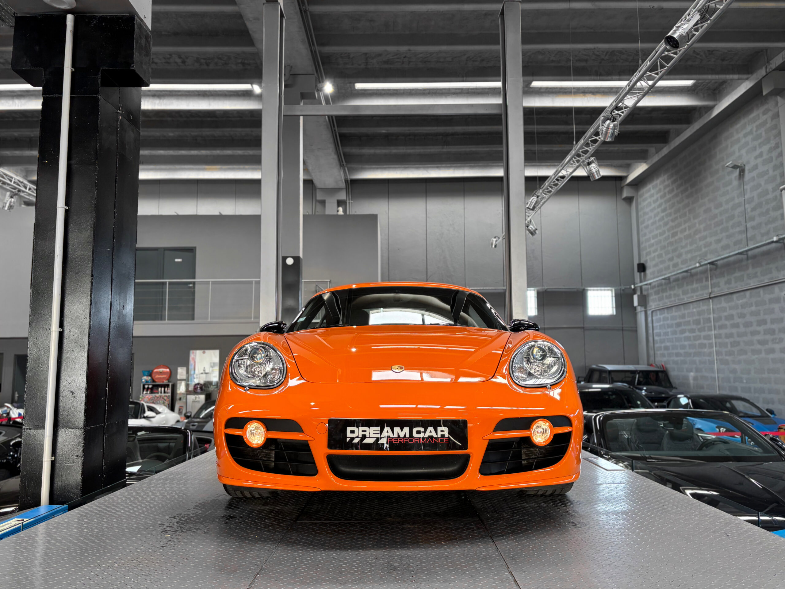 La Cayman 987 S Sport Edition se distingue par son Orange vif, ses jantes noires 19”, ses bandes “Cayman S” sur les flancs et son échappement sport.