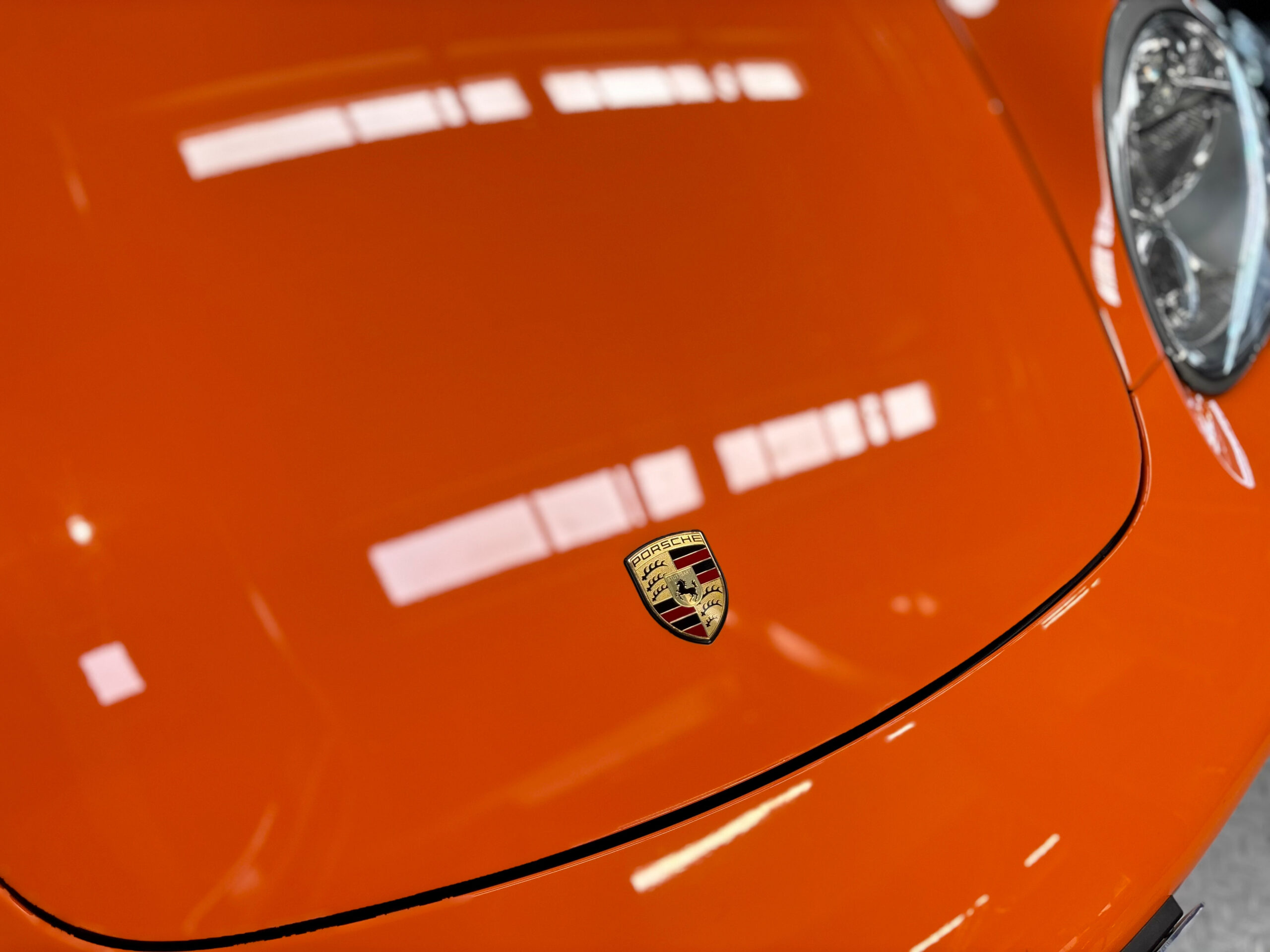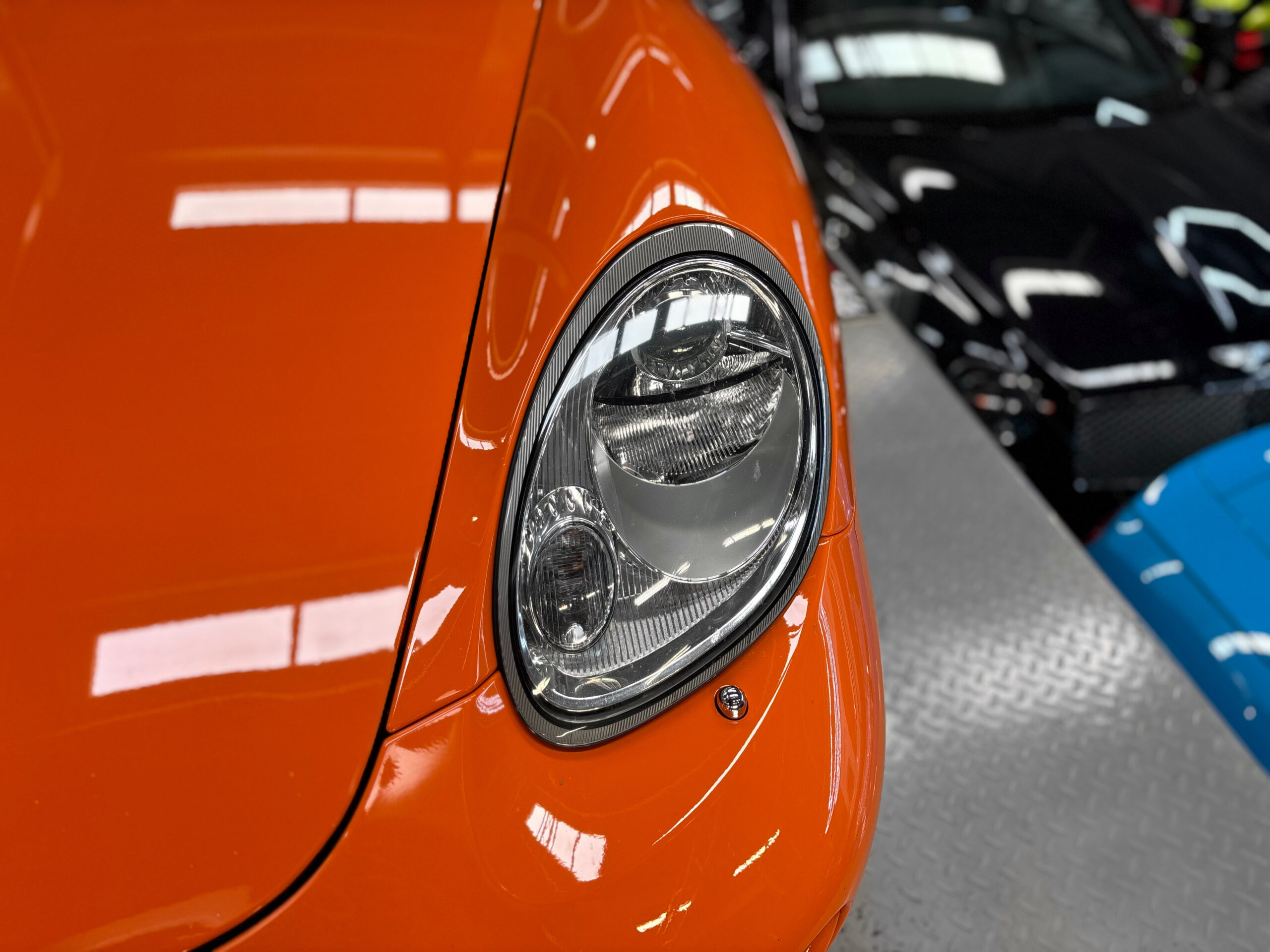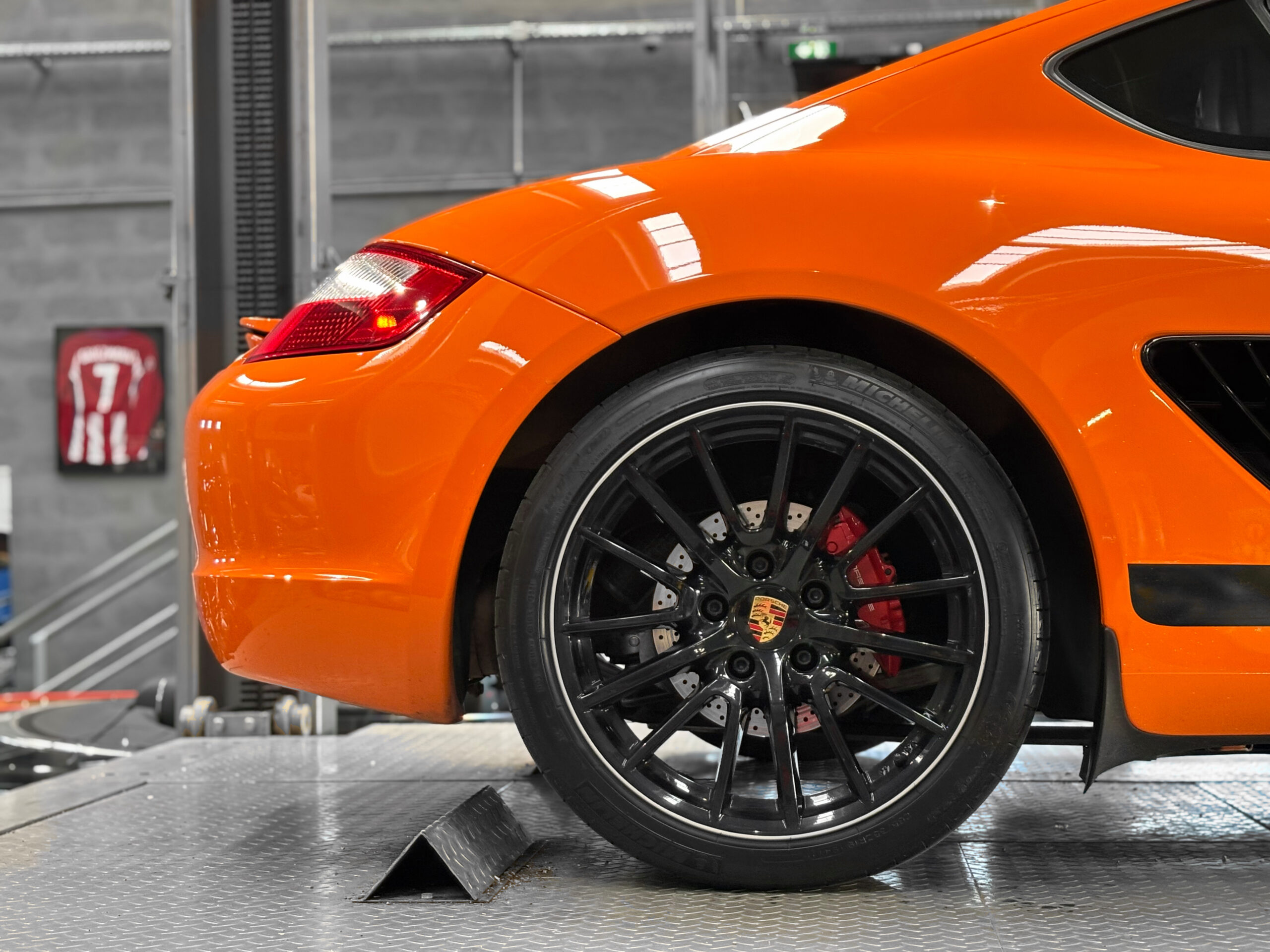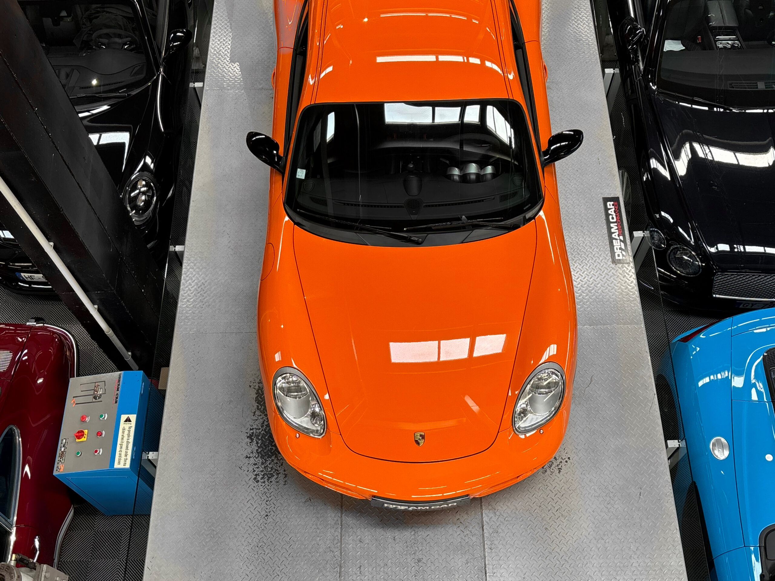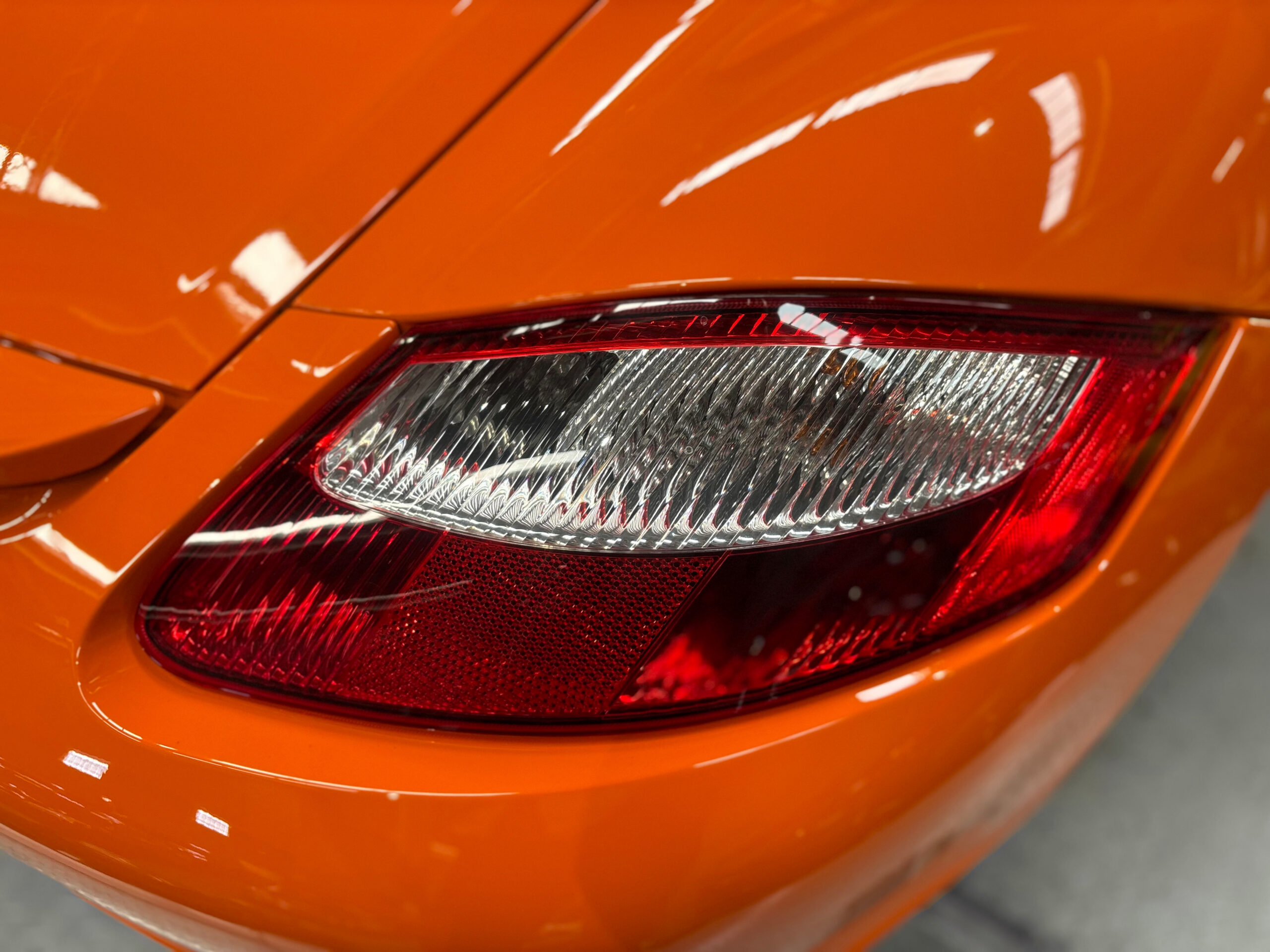 La Cayman 987 S Sport Edition se distingue par son Orange vif, ses jantes noires 19”, ses bandes “Cayman S” sur les flancs et son échappement sport.